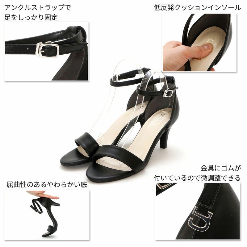 アンクルストラップの金具の裏にゴムが入っているので微調整が効いて痛くなりにくく屈曲性のあるインソールと疲れにくい低反発クッションインソールで履き心地にもこだわった作りになっています。