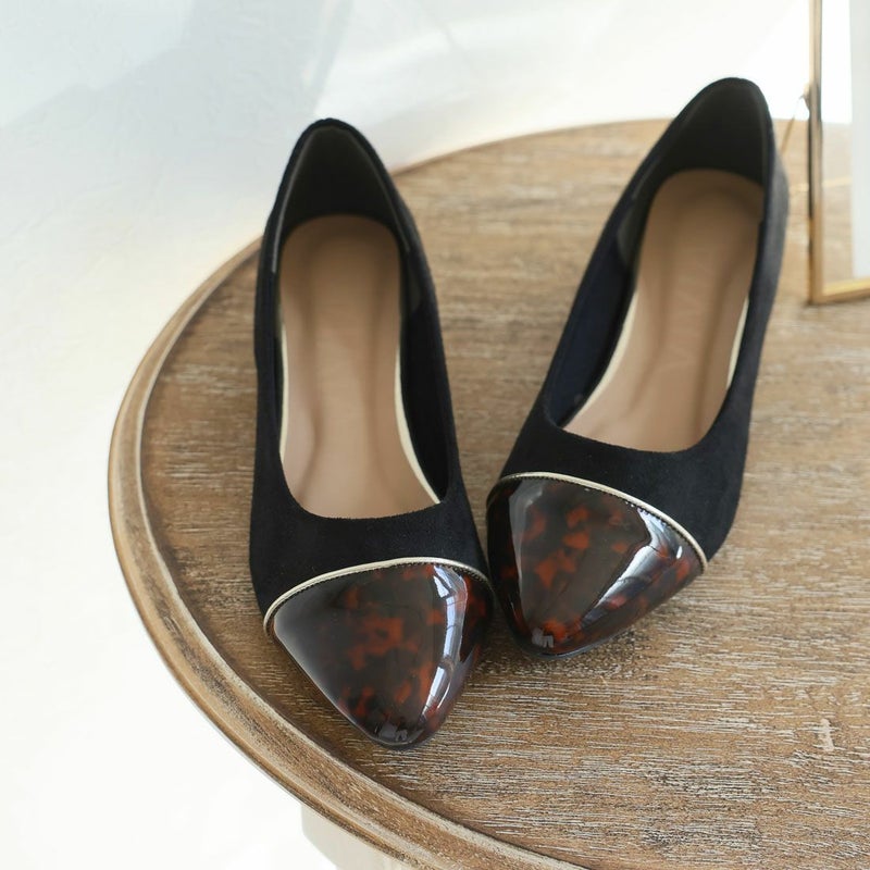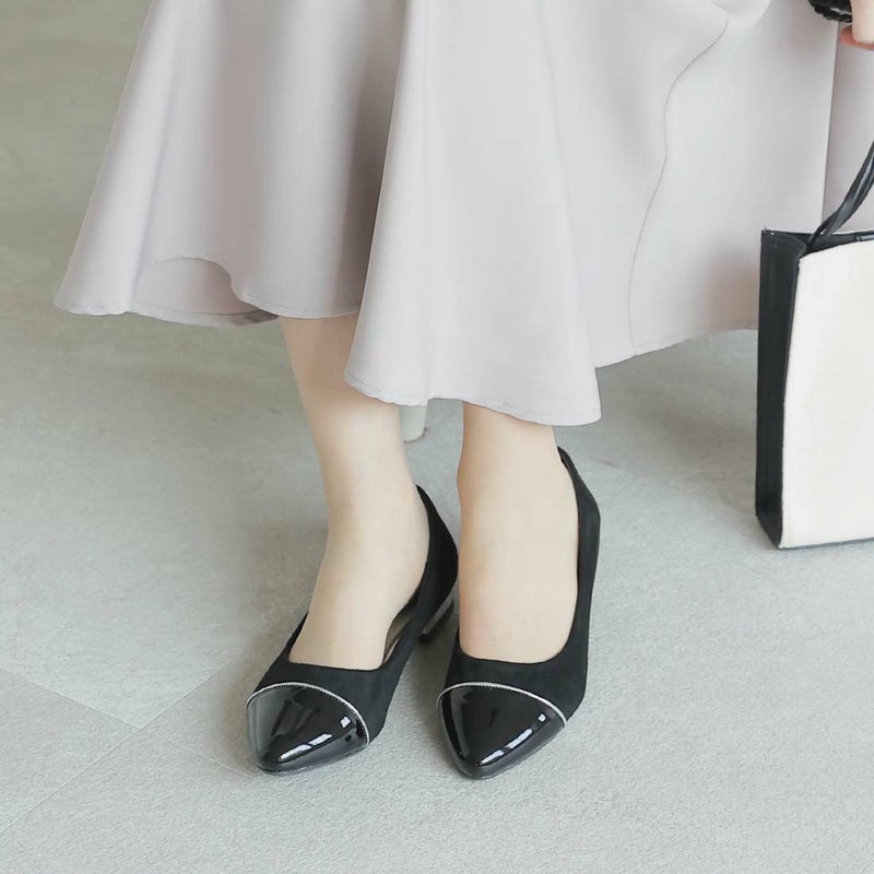 ・キチンと感のあるアーモンドトゥ×ローヒールでデイリーからオフィスまで、オンオフどんなシーンでも大活躍しそう。
