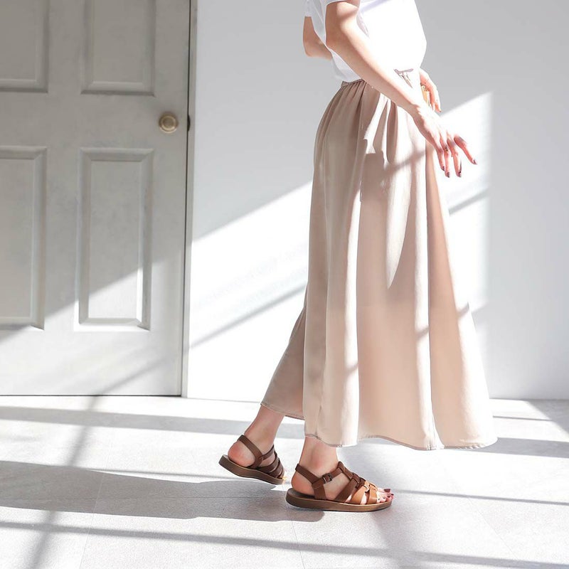 ・軽量の2cm厚底フラットソールは、屈曲性があってよく曲がるので走ったり色んな動きに対応できてアクティブに過ごせます!