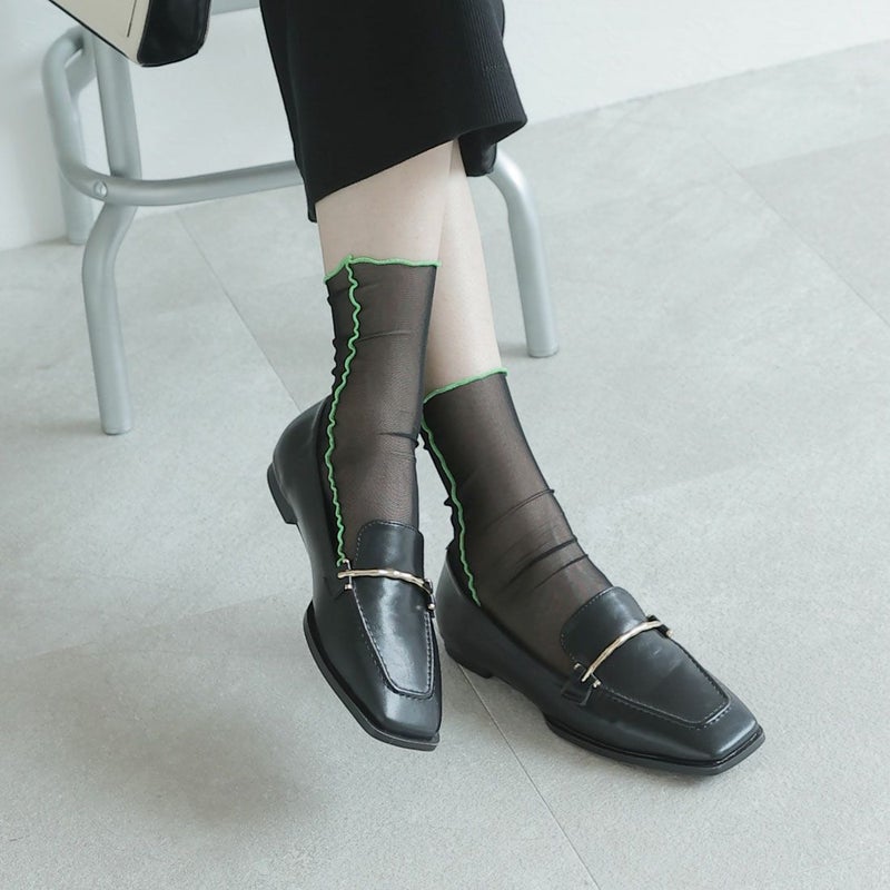 ・存在感のあるスクエアトゥから覗くソール使いでエッジの効いたマニッシュ感たっぷりな大人な1足。