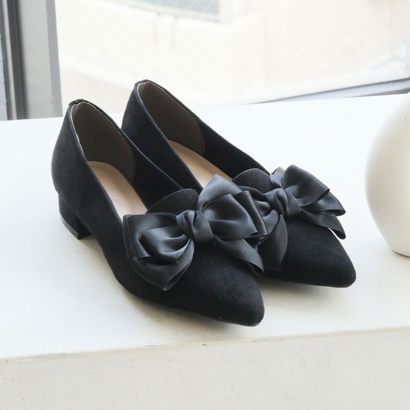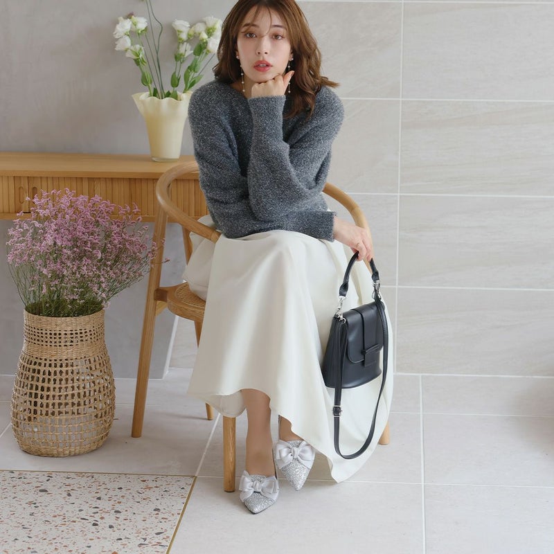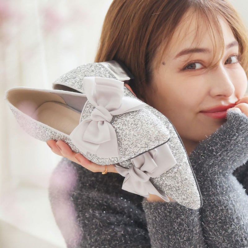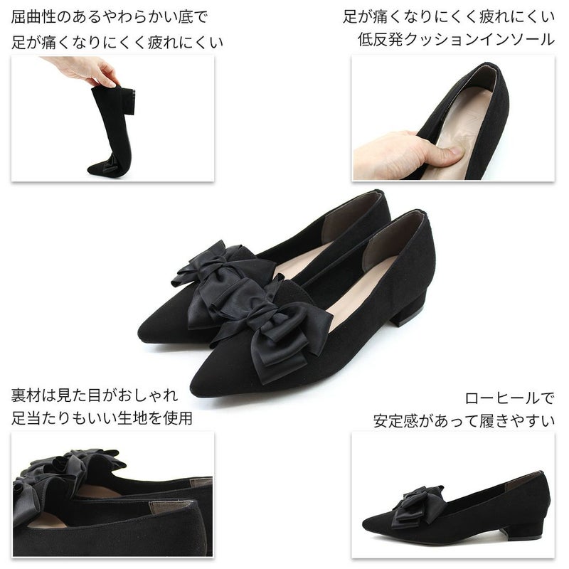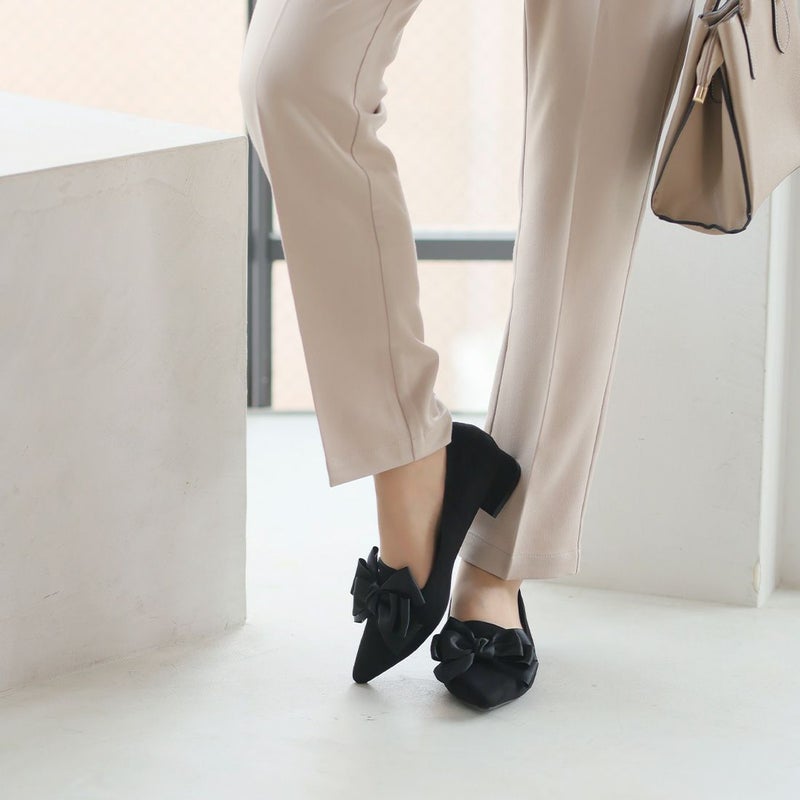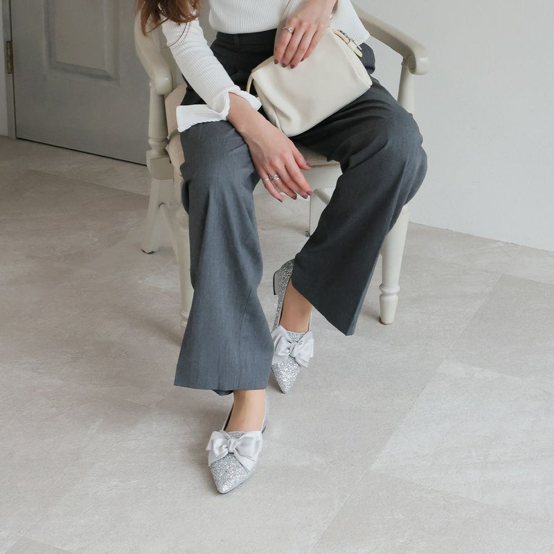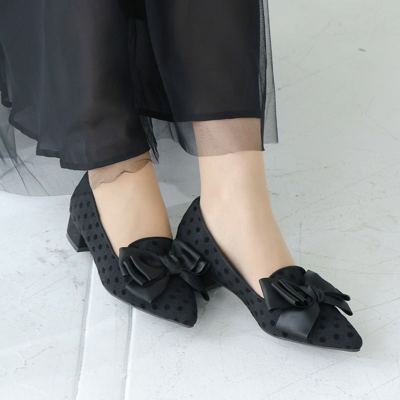 ・サテンのリボンで足元に華やかさをプラスするパンプス!