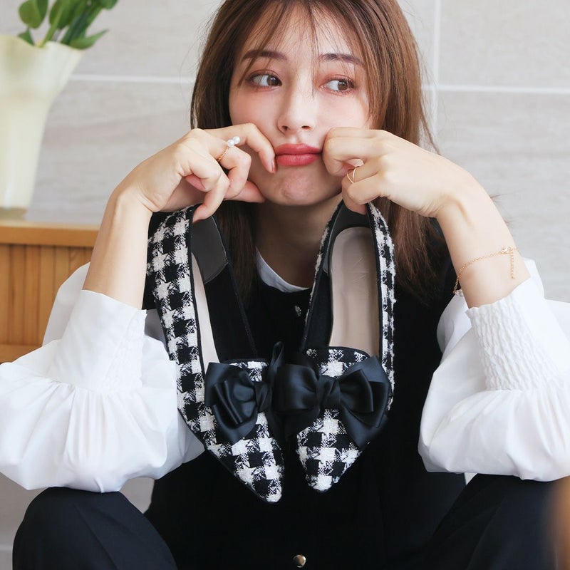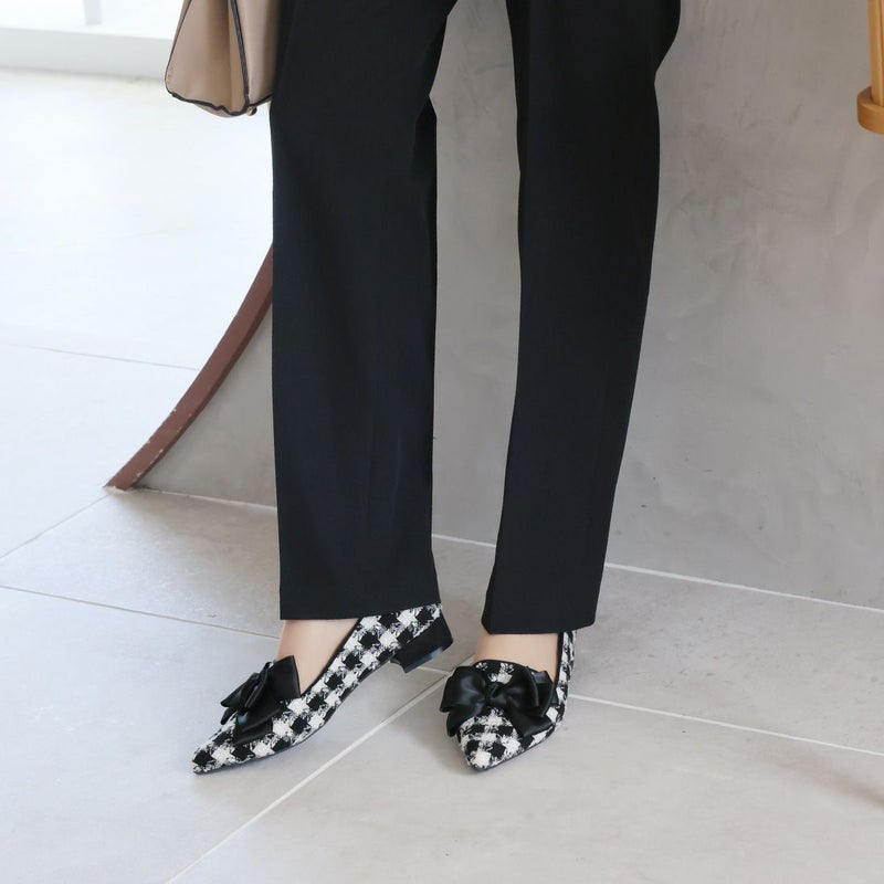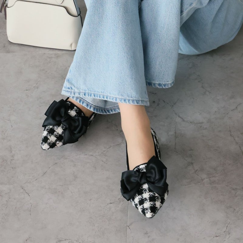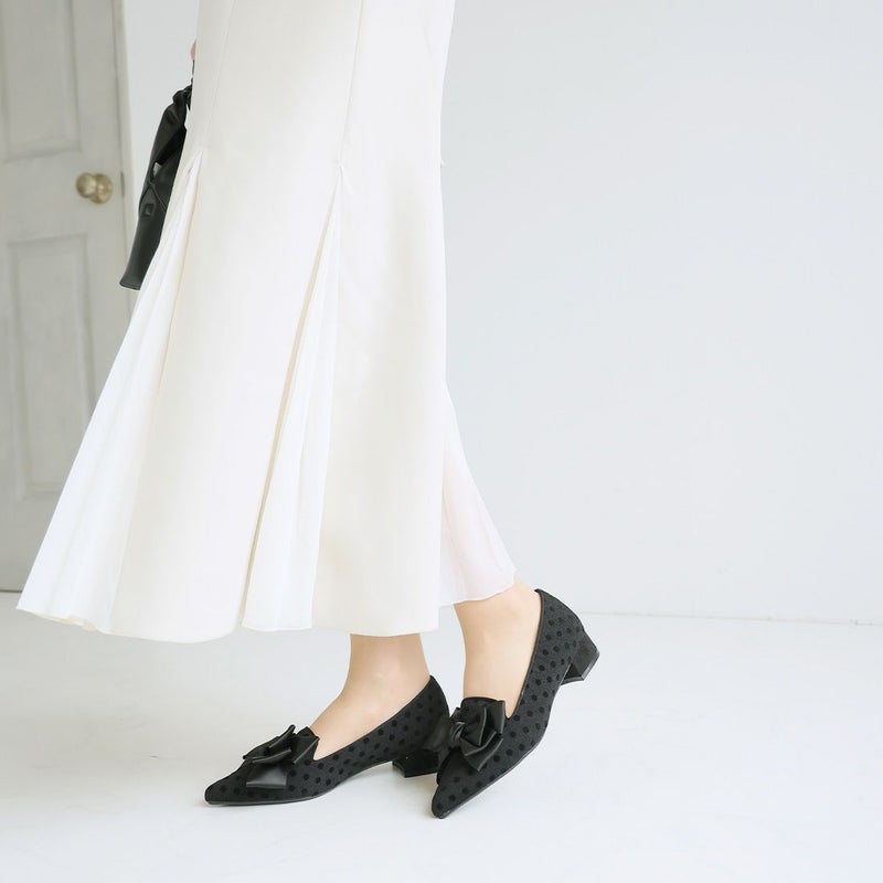 ・ポインテッドトゥ×ローヒールで甘くなりすぎない上品フォルム。