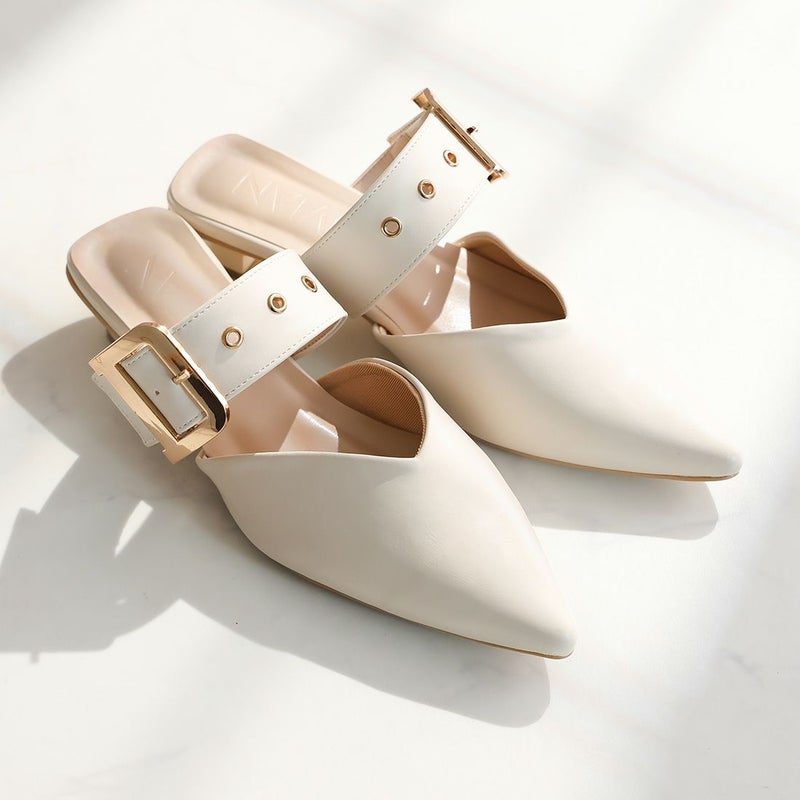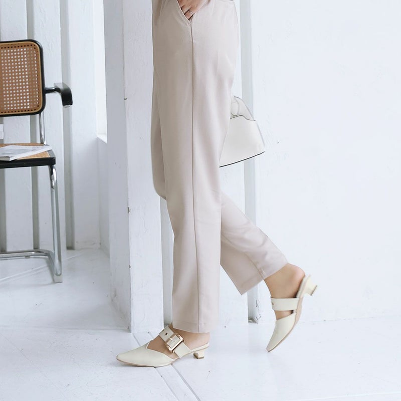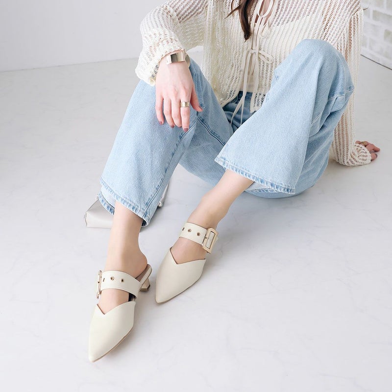 VIVIAN 【2026年春新色追加】ポインテッドトゥVカットバックルベルトミュールパンプス