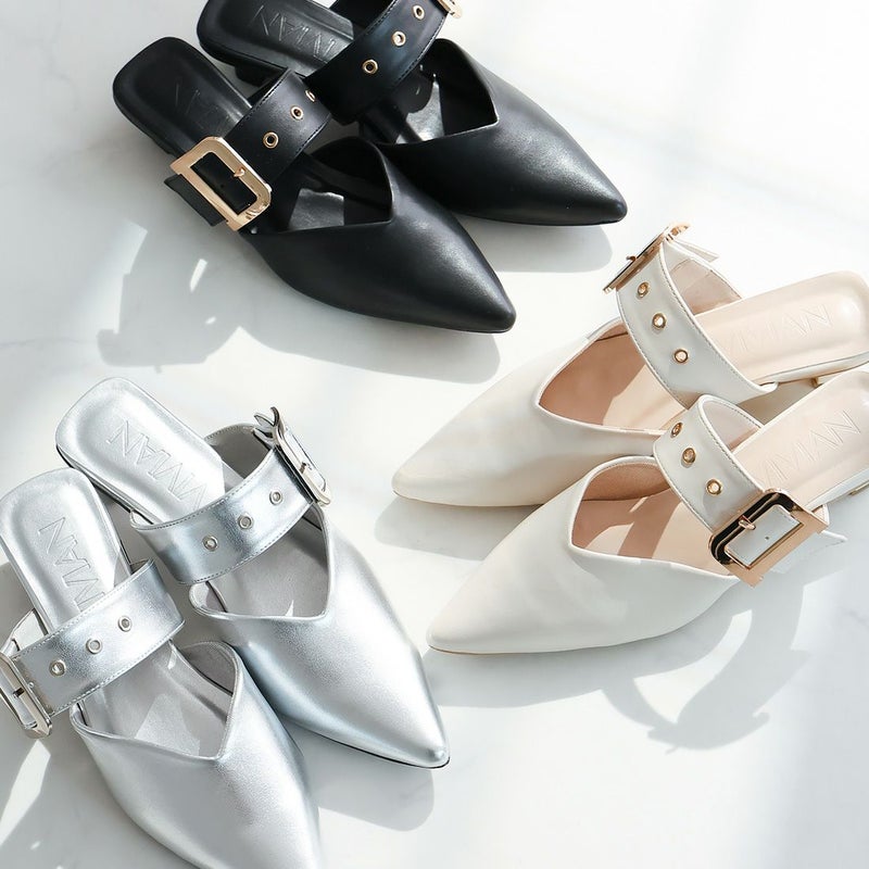 ・人気のバックルベルトミュールパンプスにシルバーが仲間入り!