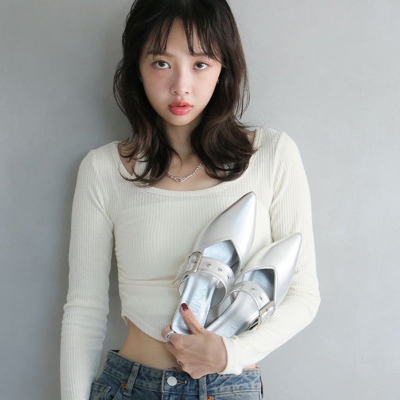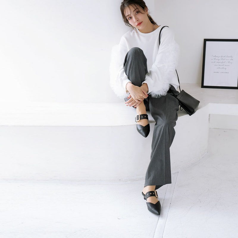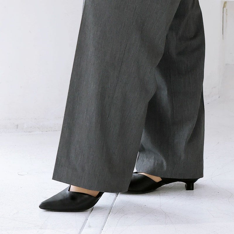 ・ポインテッドトゥ×Vカットで甘くなりすぎない上品フォルム。