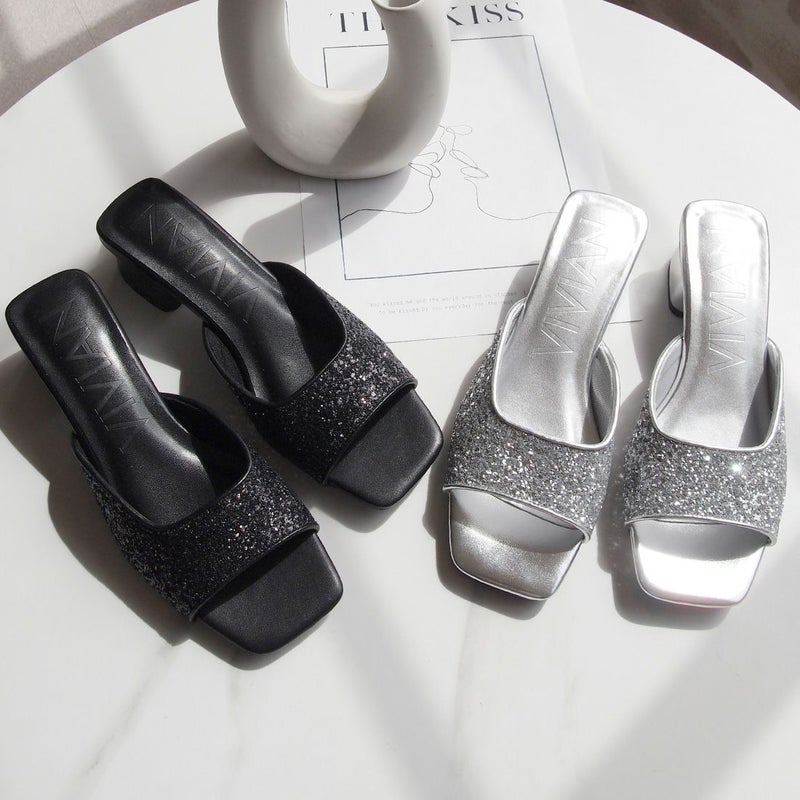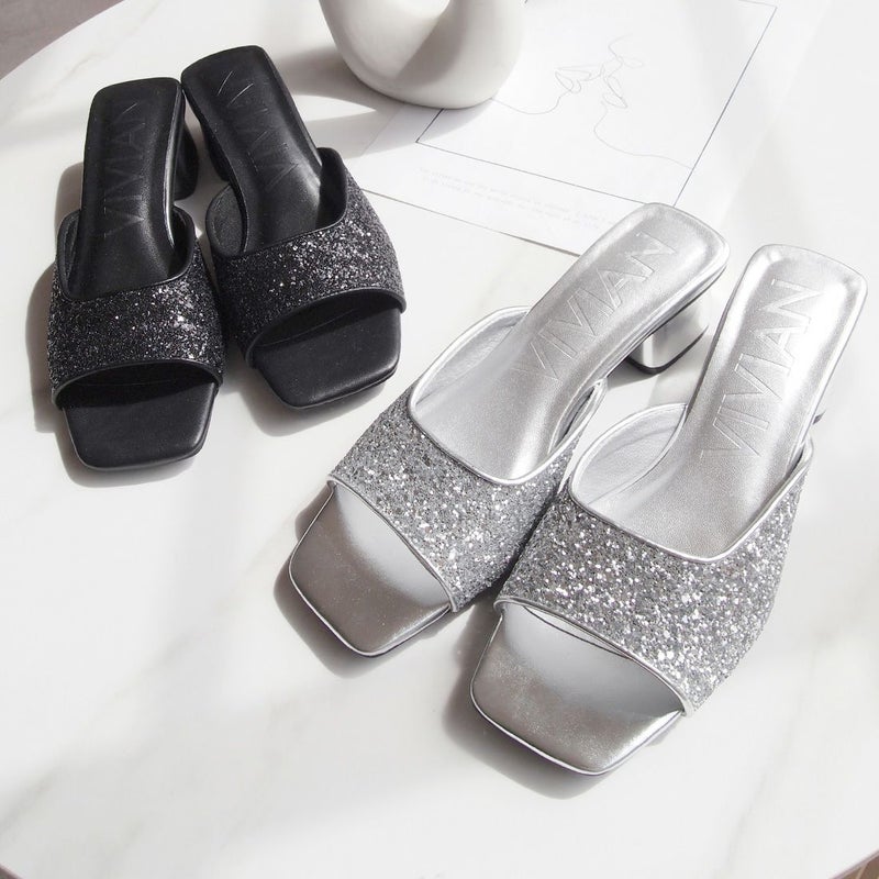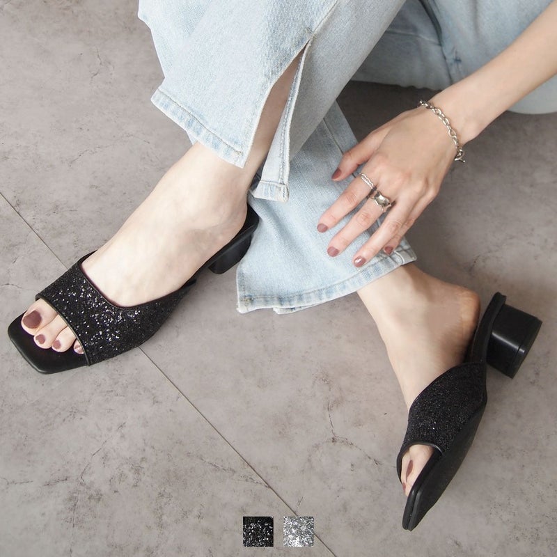 ・キラキラのグリッターが輝く主役級アイテムのミュールサンダル!