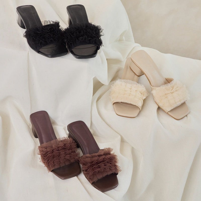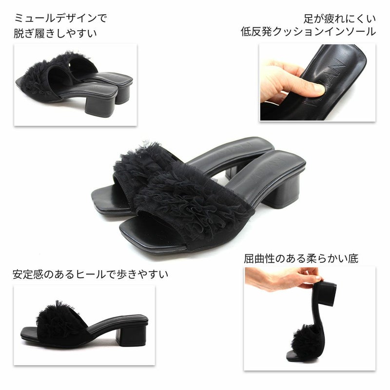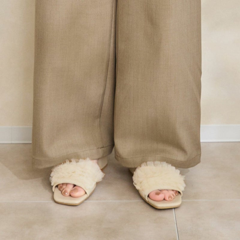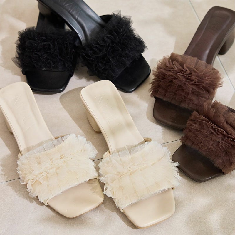 ・定番のミュールデザインも華やかなフリルチュールで大人の抜け感漂う足元に!