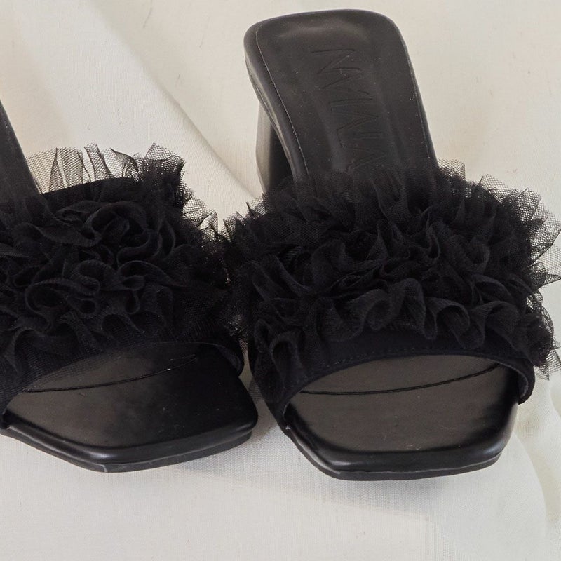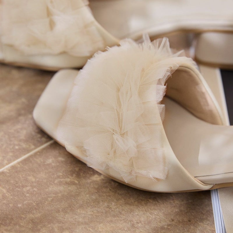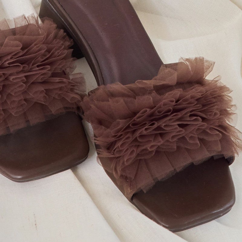 ・大人でも取り入れやすい、控え目ボリュームのチュールフリルサンダル!