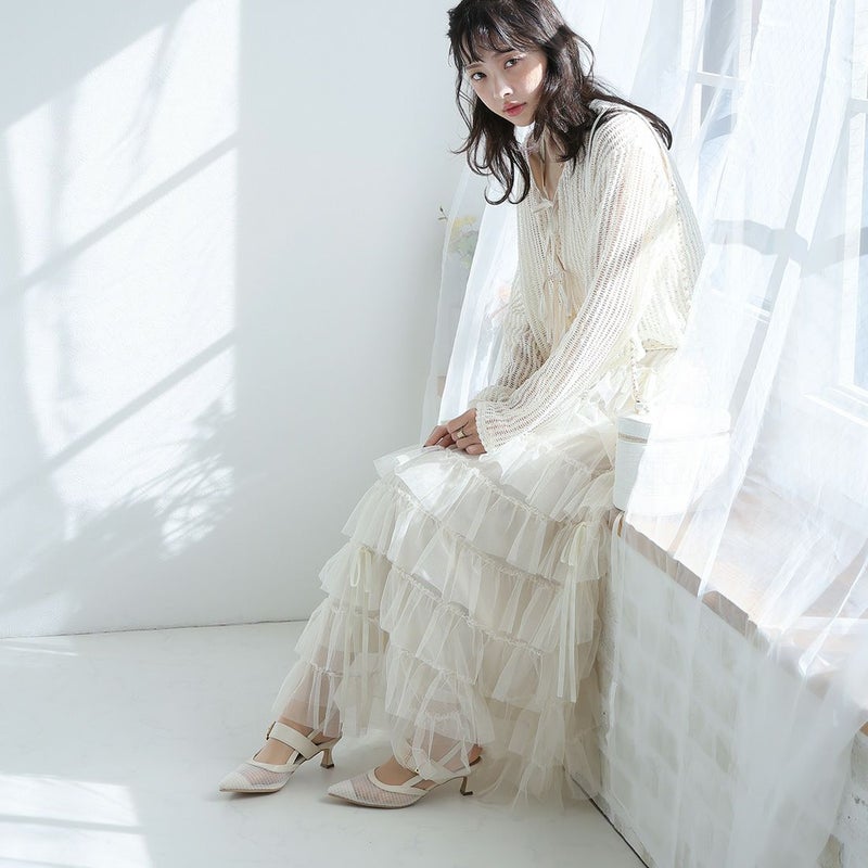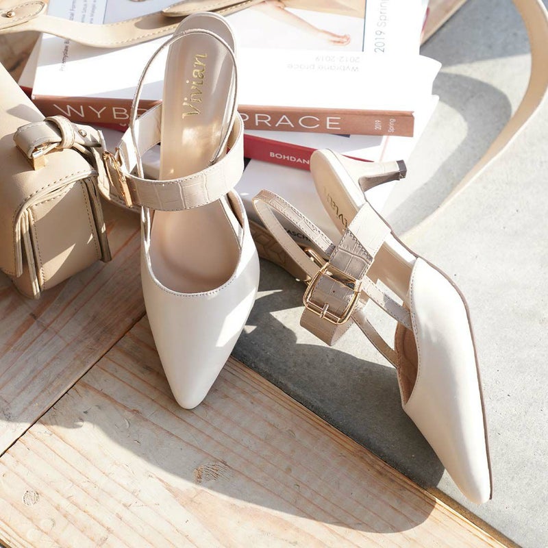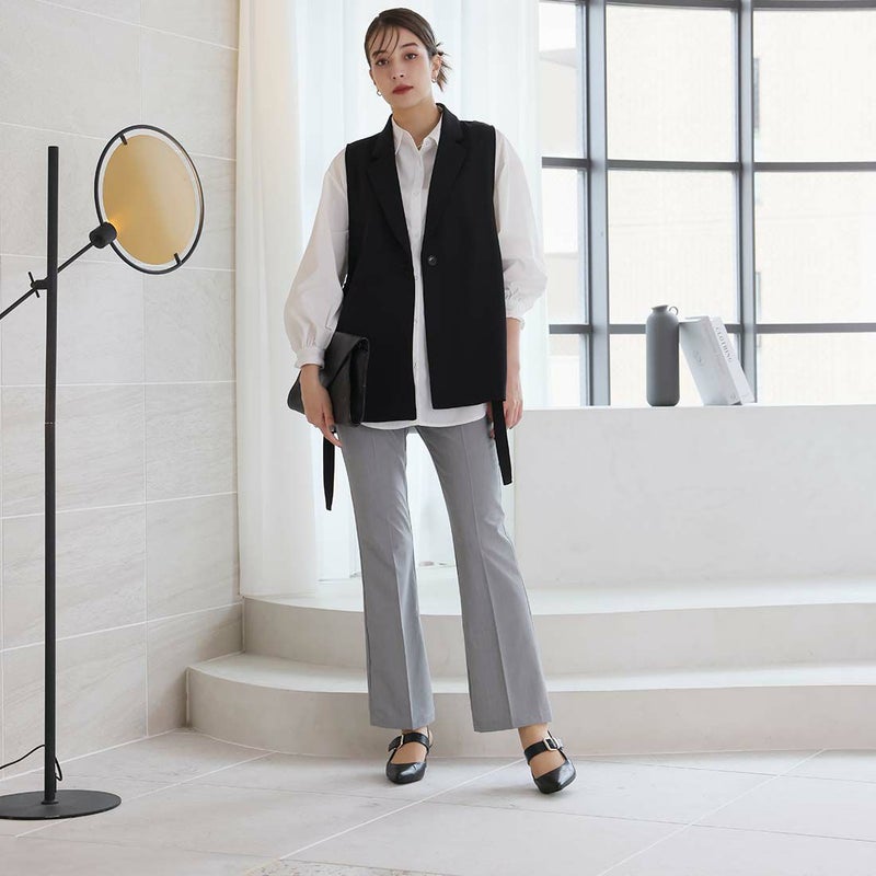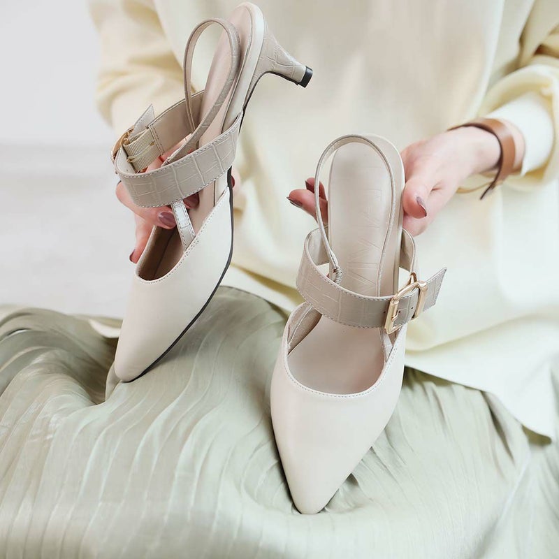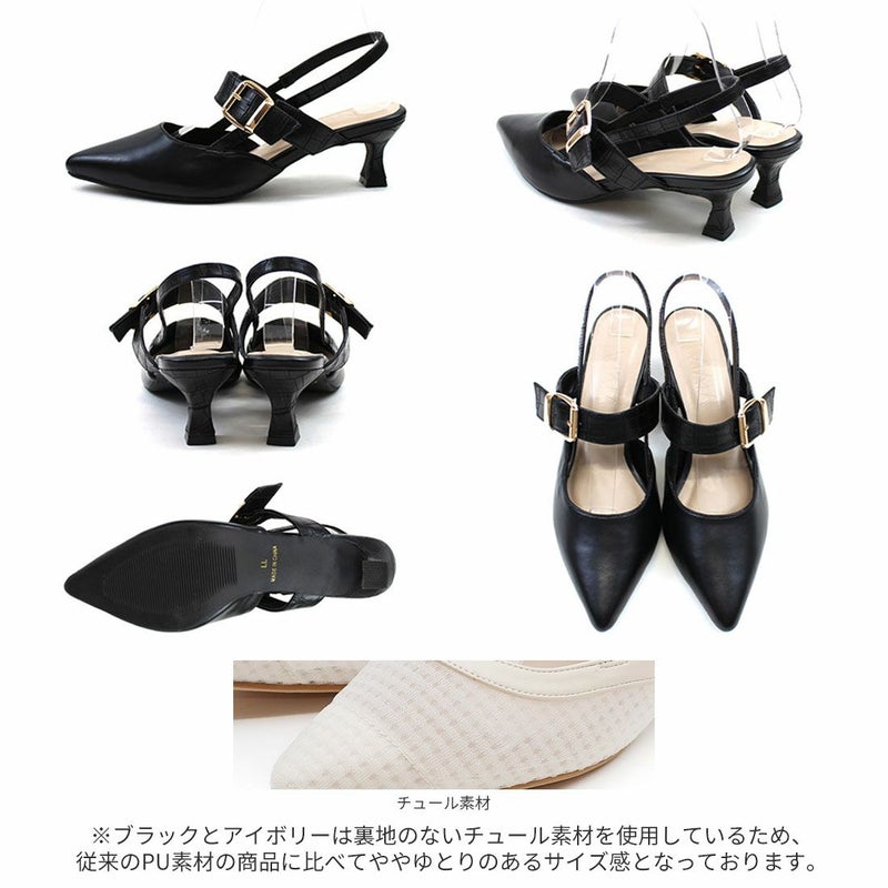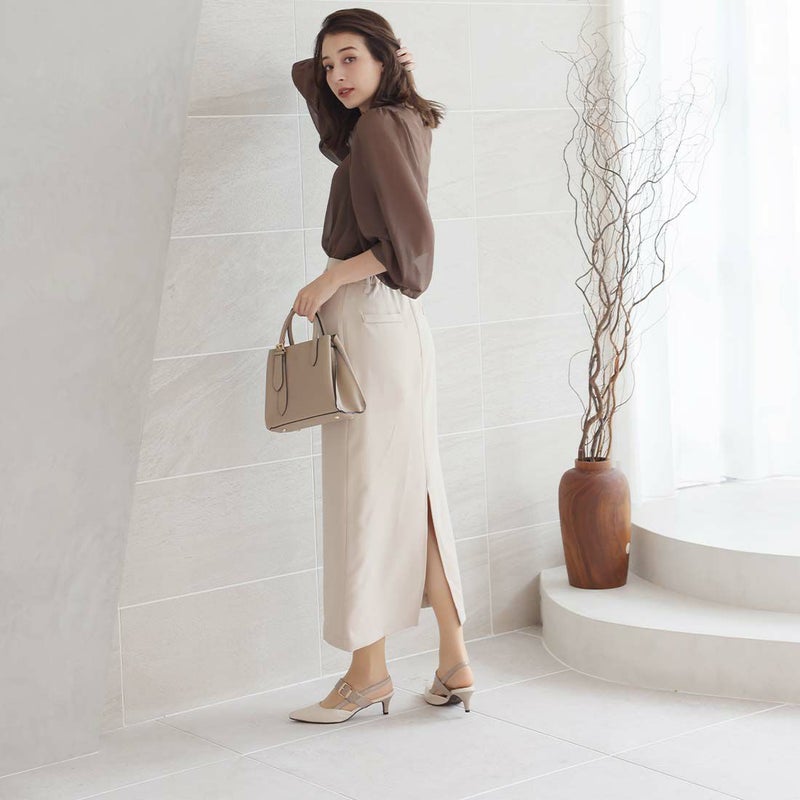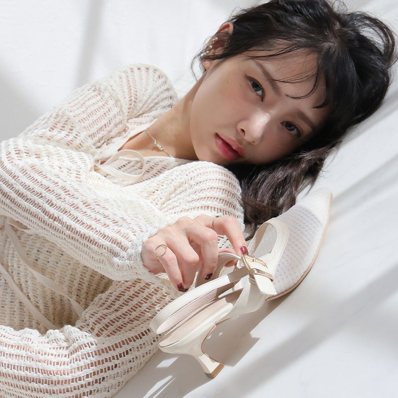 ・ポインテッドトゥ×バックストラップの組み合わせはお仕事コーデにも◎。