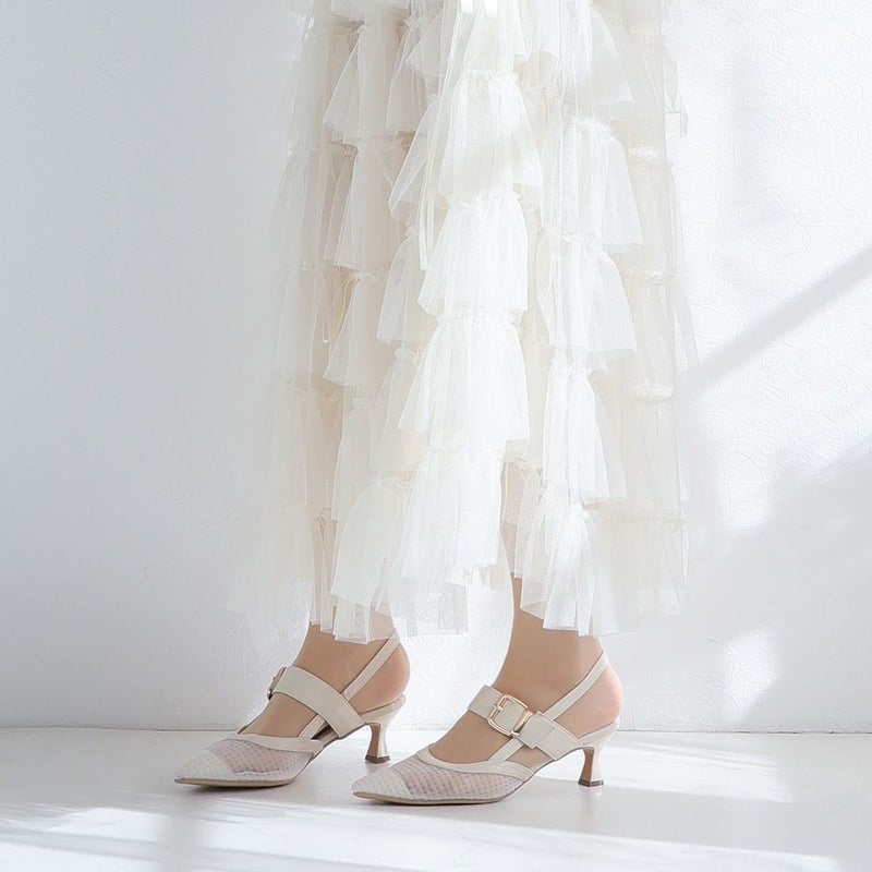 ・人気のバックルベルトパンプスに上品ばチュールとスムースの異素材コンビの2色が仲間入り!