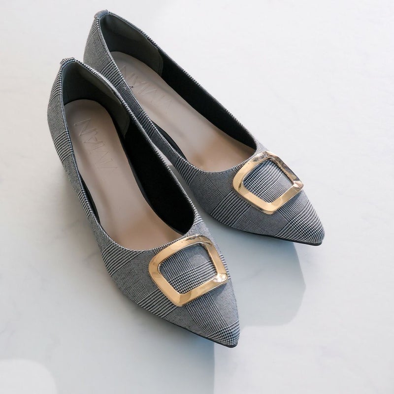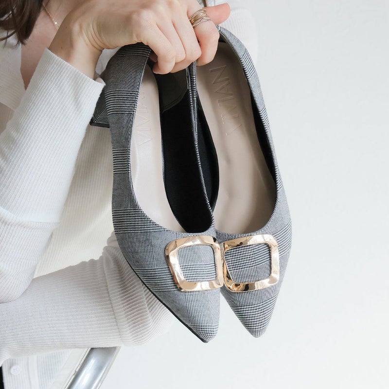・人気のゴールドモチーフパンプスにグレーのグレンチェックが仲間入り!