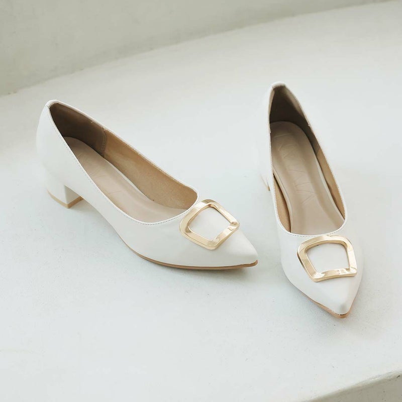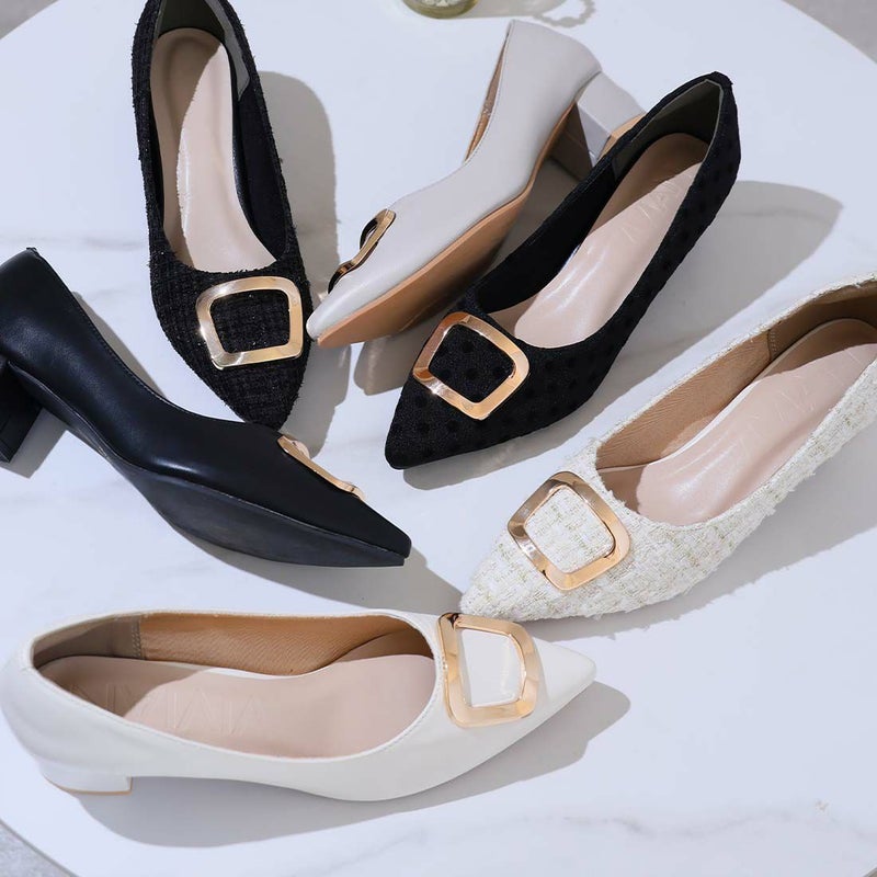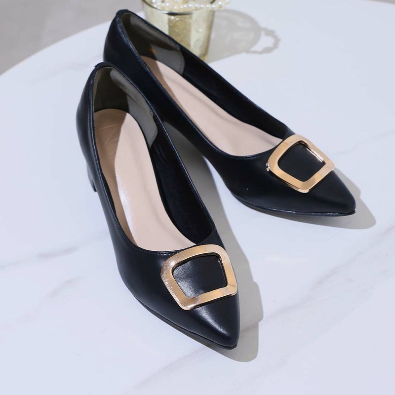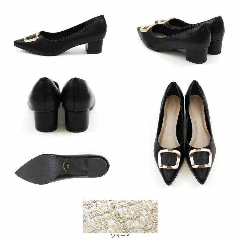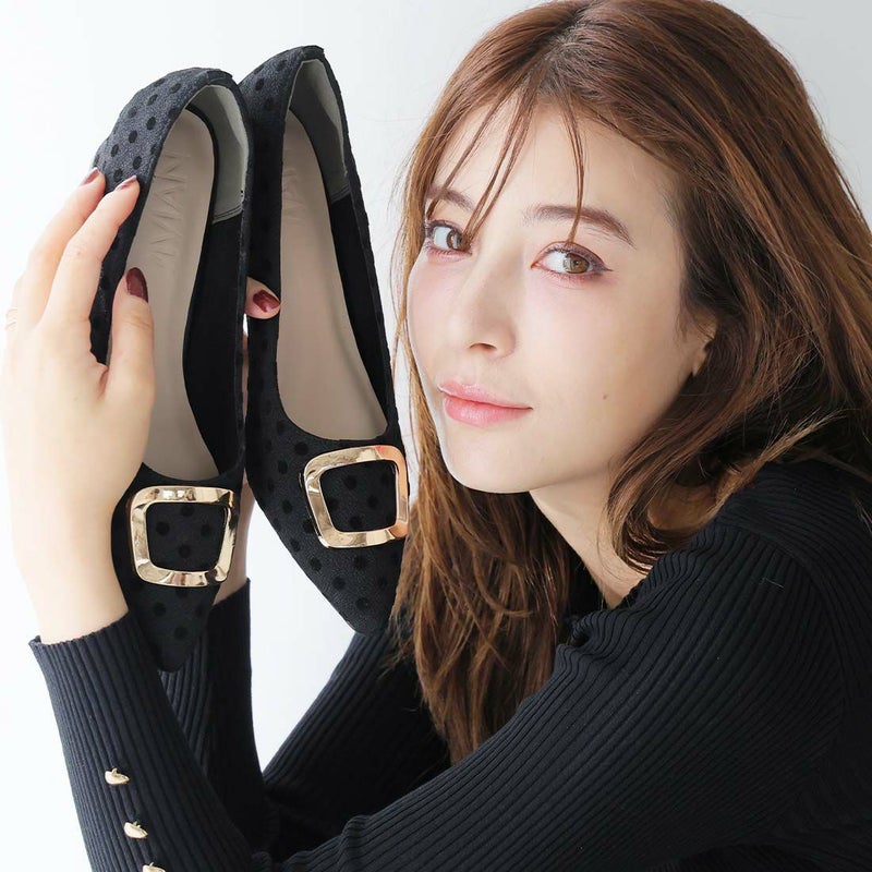 ・キラリと光るゴールドのバックルが映えるモチーフパンプス!