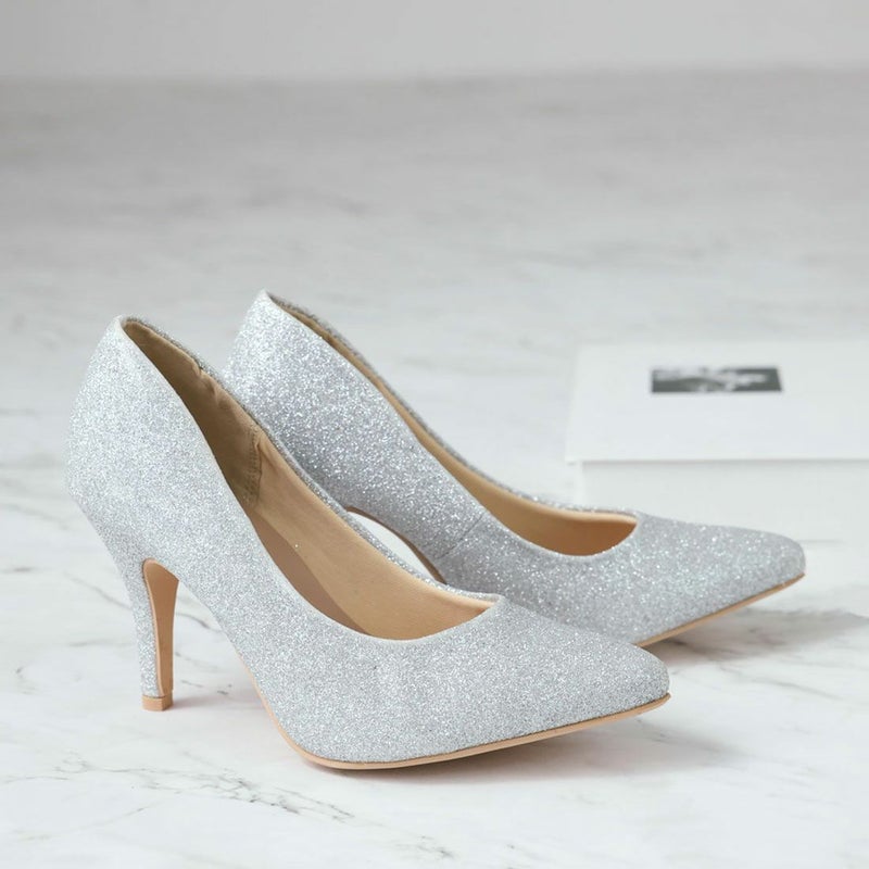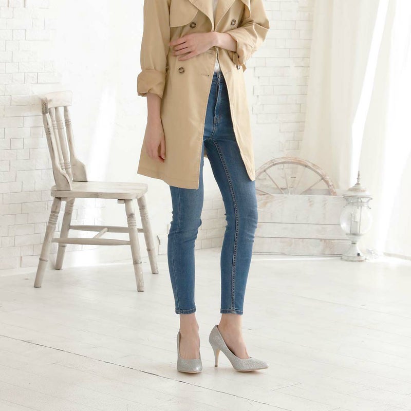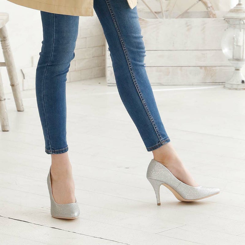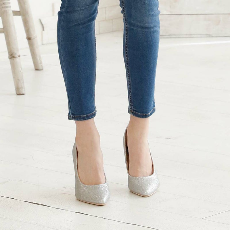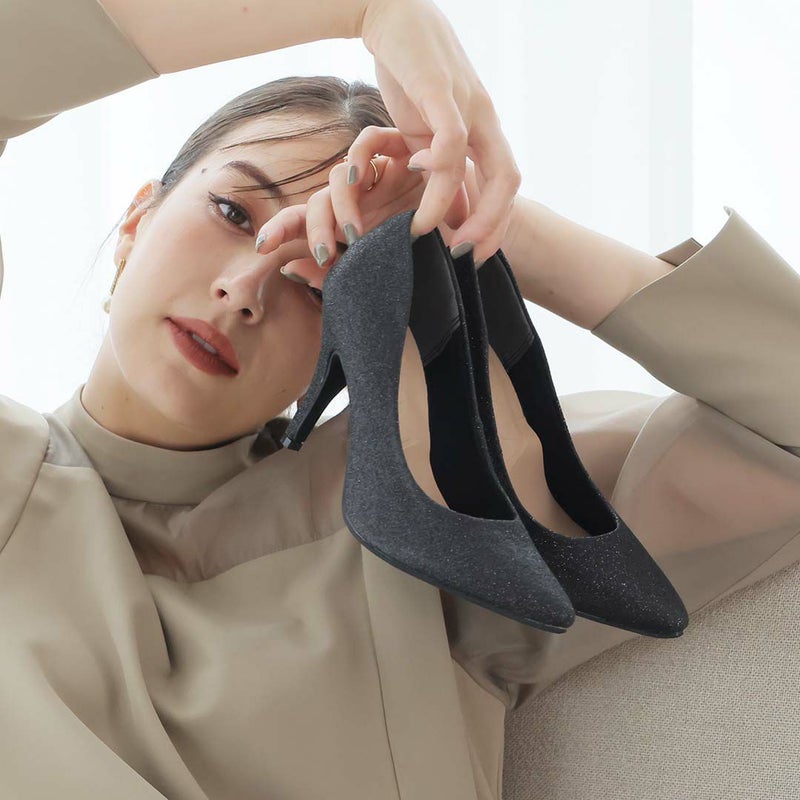足をきれいに見せてくれる美脚効果バツグンの9cmヒールのポインテッドトゥパンプスは、
