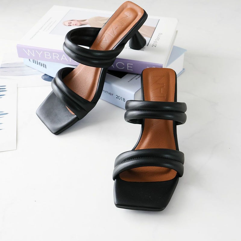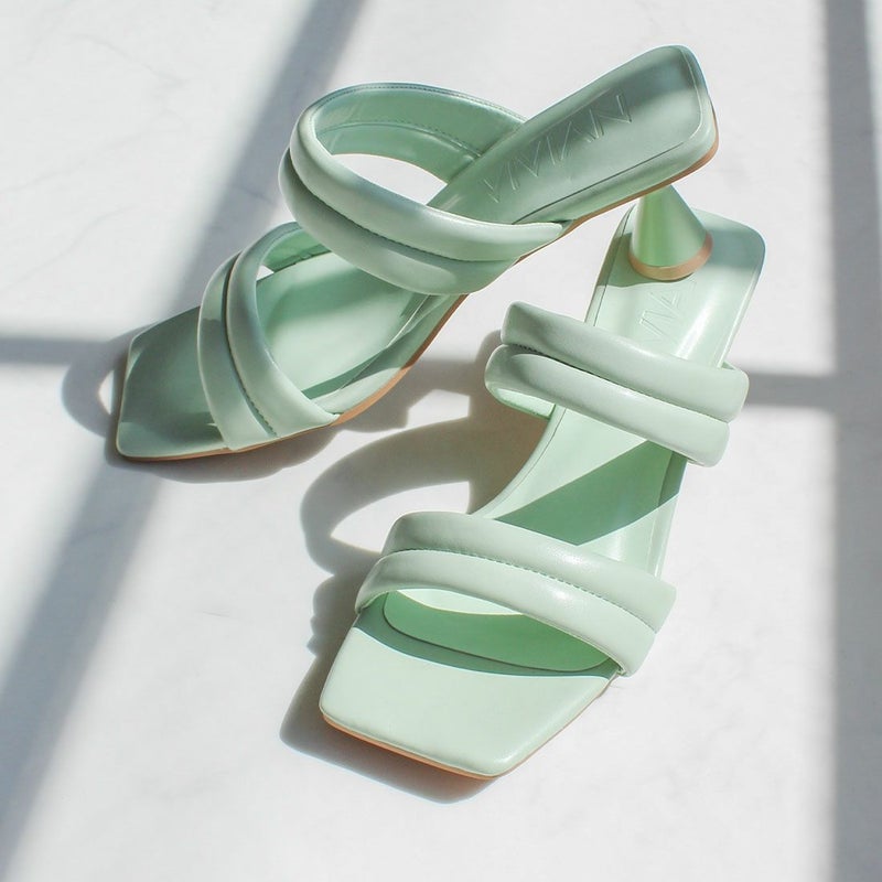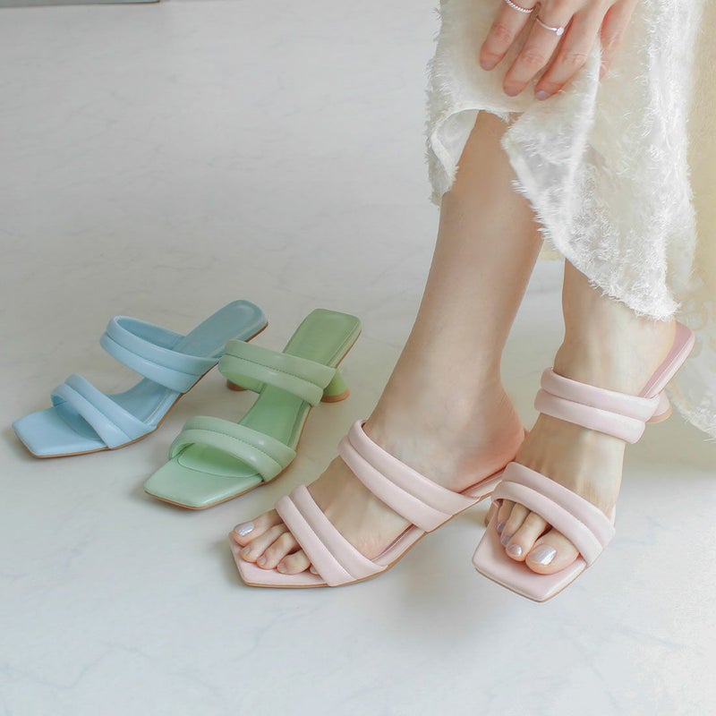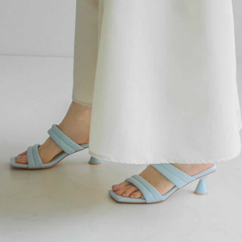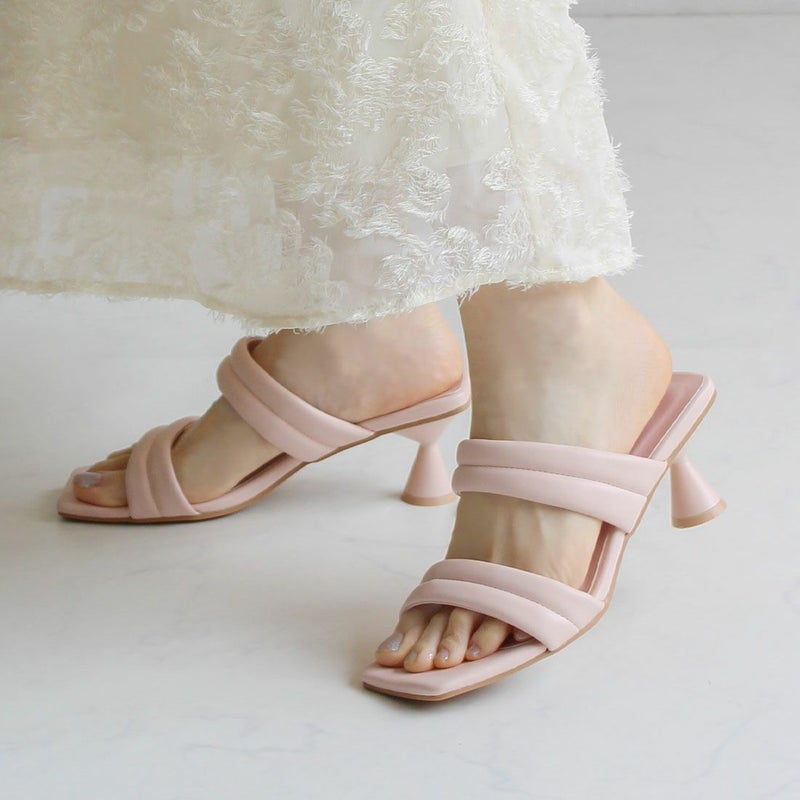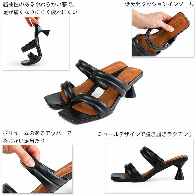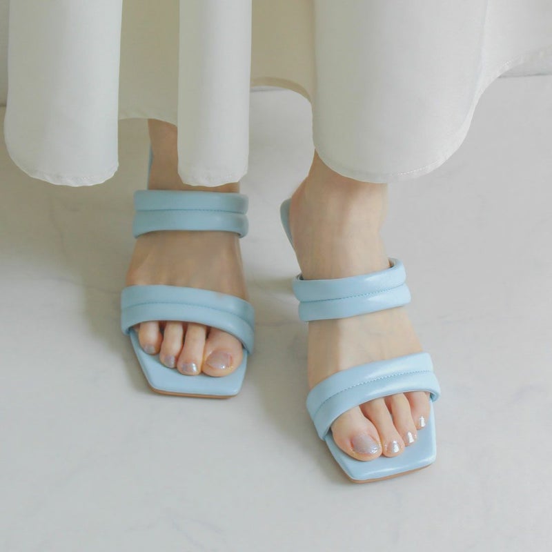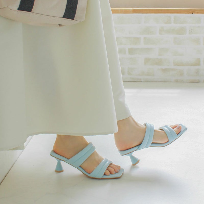 VIVIAN スクエアトゥパデッドダブルベルトミュールサンダル
