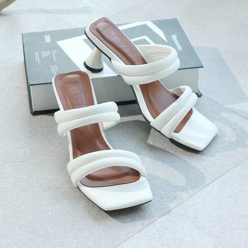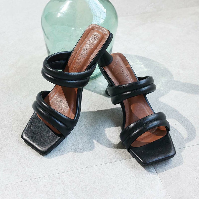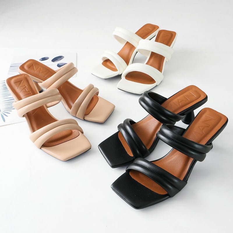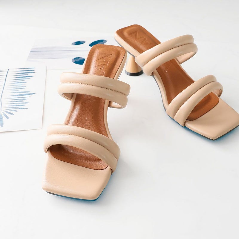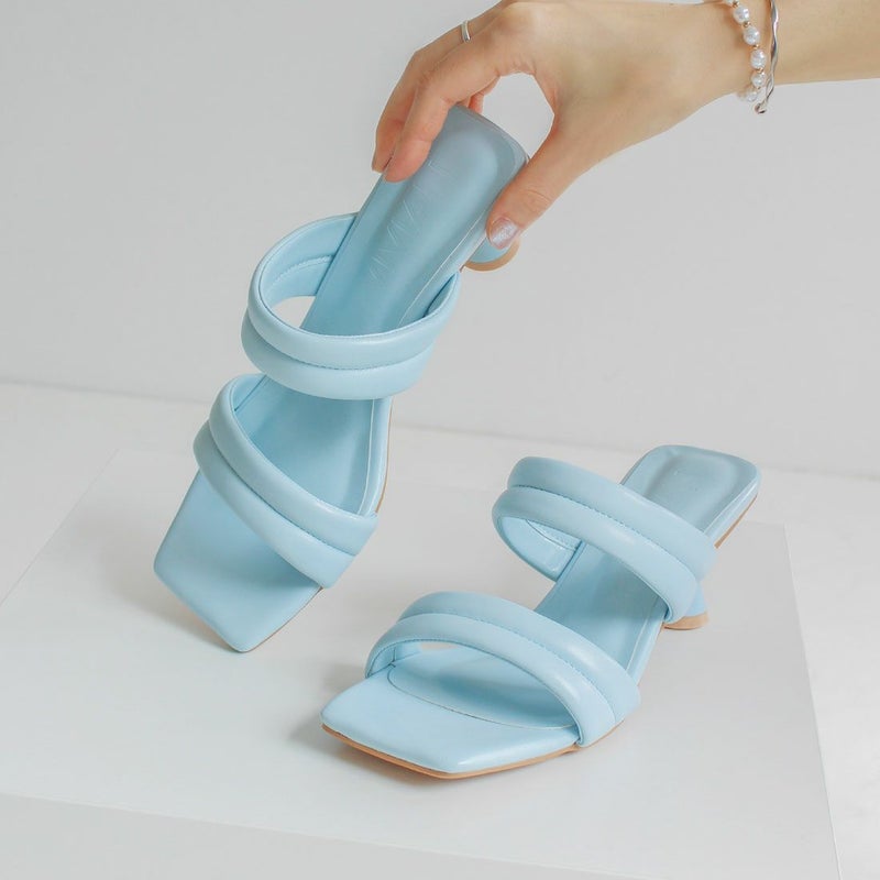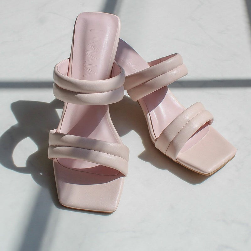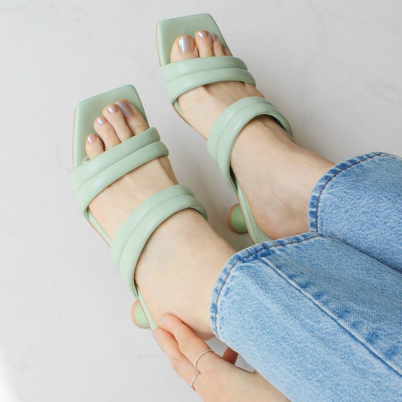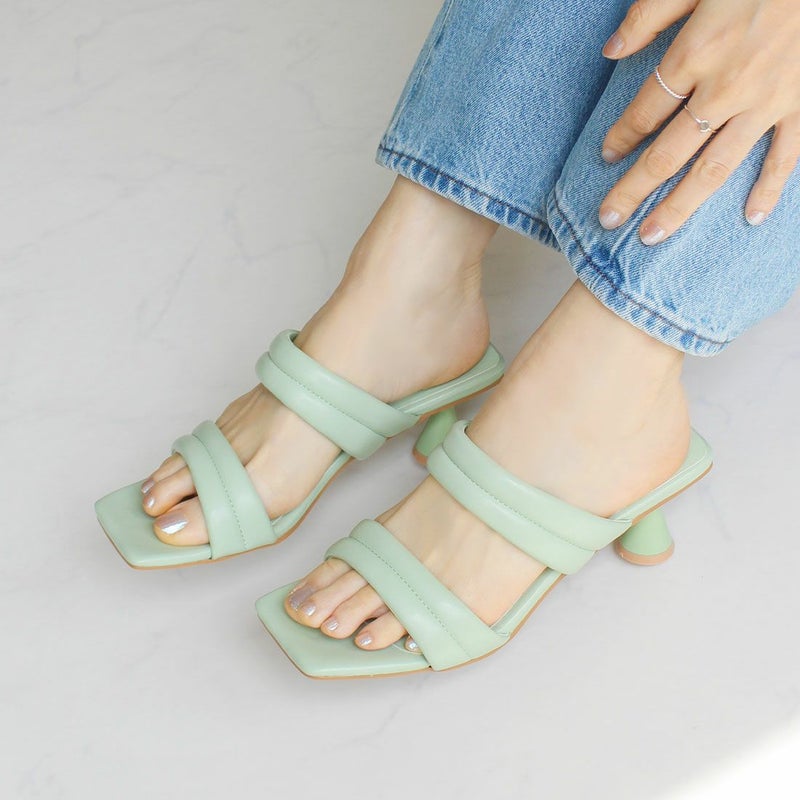 VIVIAN スクエアトゥパデッドダブルベルトミュールサンダル