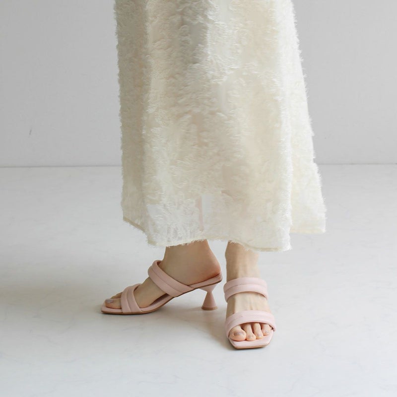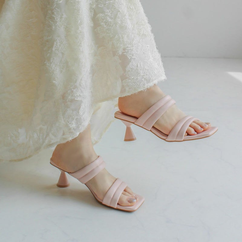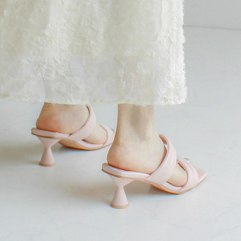 ・スクエアトゥ×変形くびれヒールでトレンドライクなシルエット!
