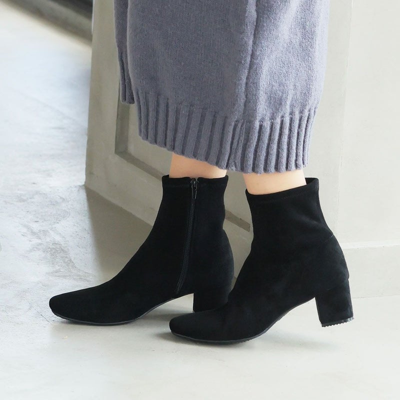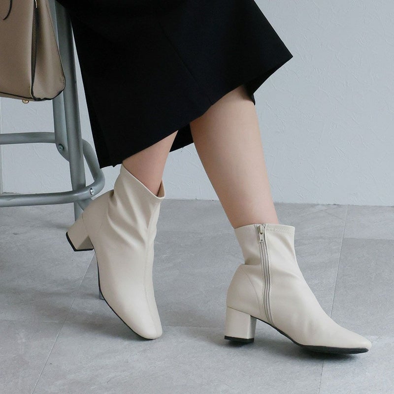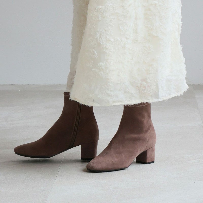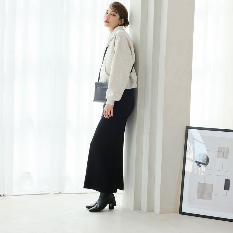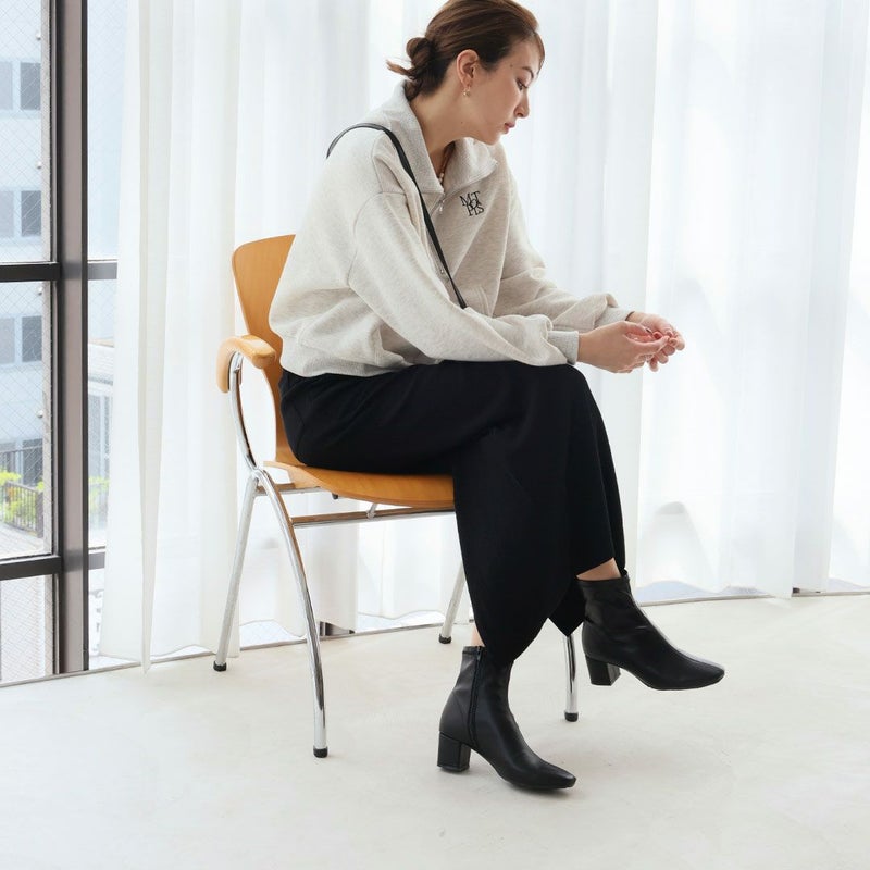 ・スタイルアップが叶うストレッチブーツは、スカートにもパンツにもバランス良く合わせやすく大人っぽいコーデに仕上がる1足。