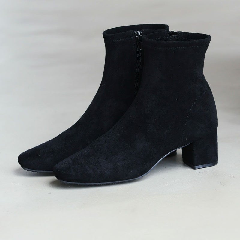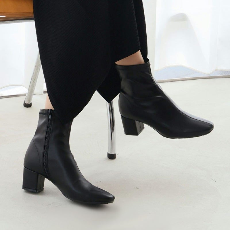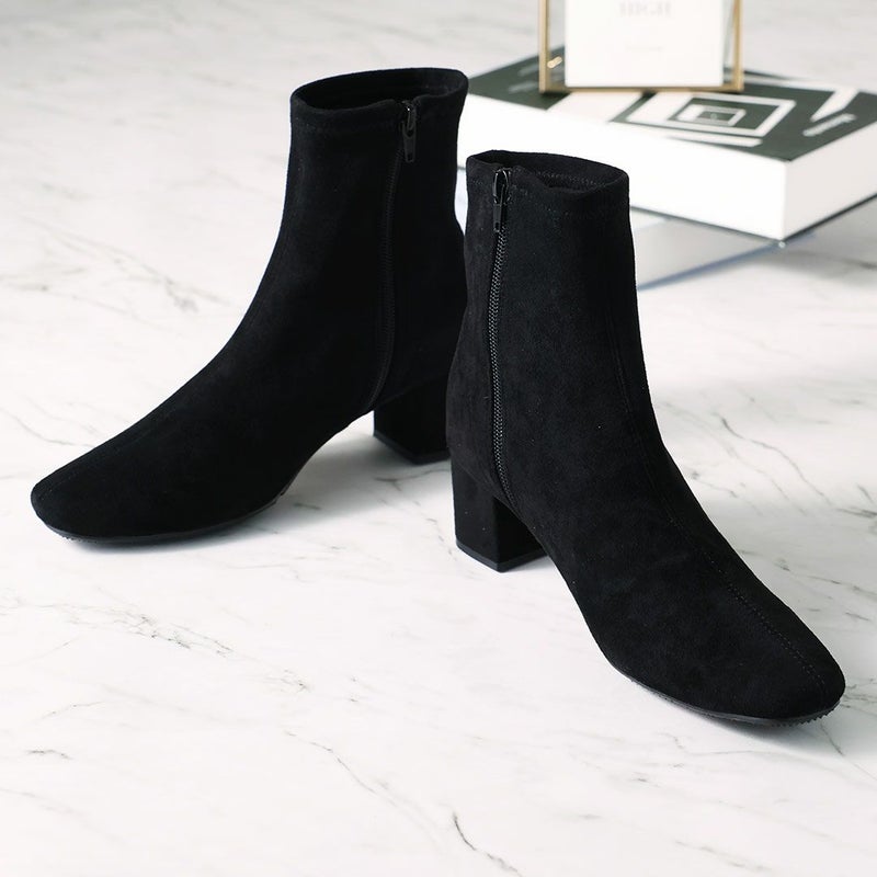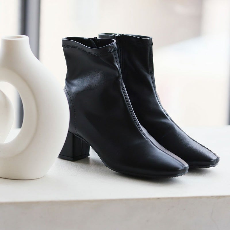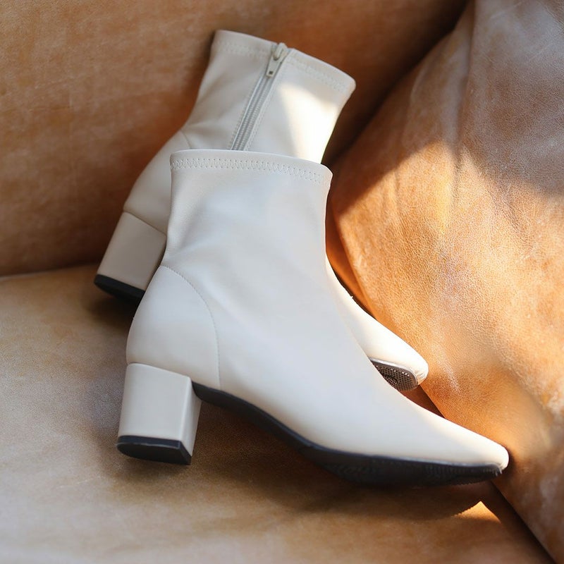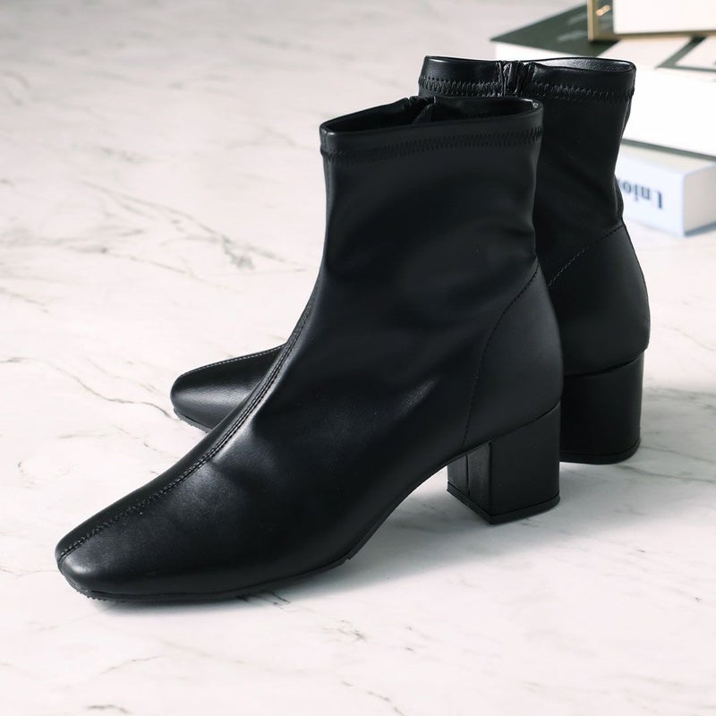 ・スタイルアップが叶うストレッチブーツは、スカートにもパンツにもバランス良く合わせやすく大人っぽいコーデに仕上がる1足。