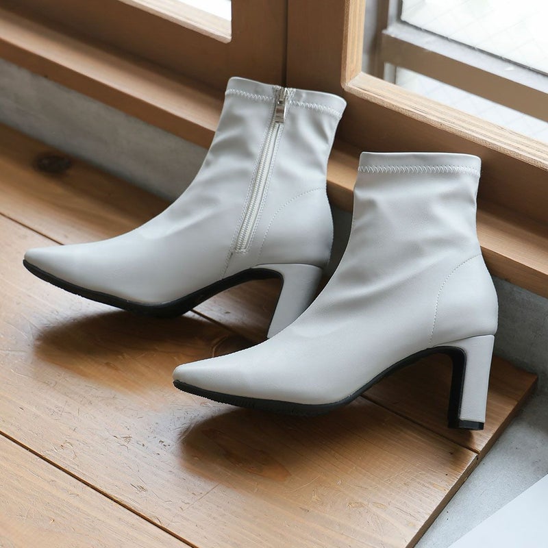 ・人気のプレートヒールストレッチブーツにグレーとグレージュが仲間入り!