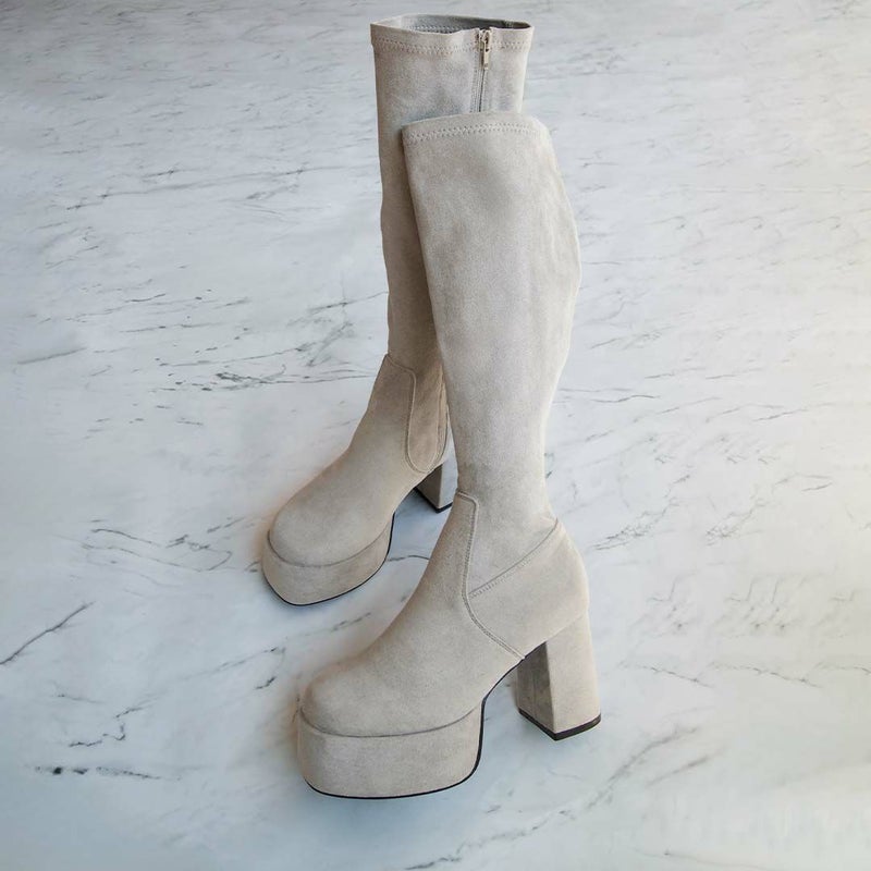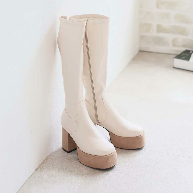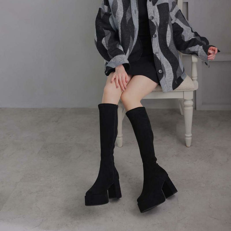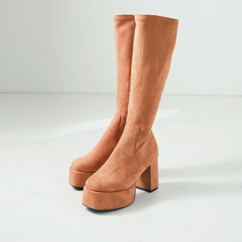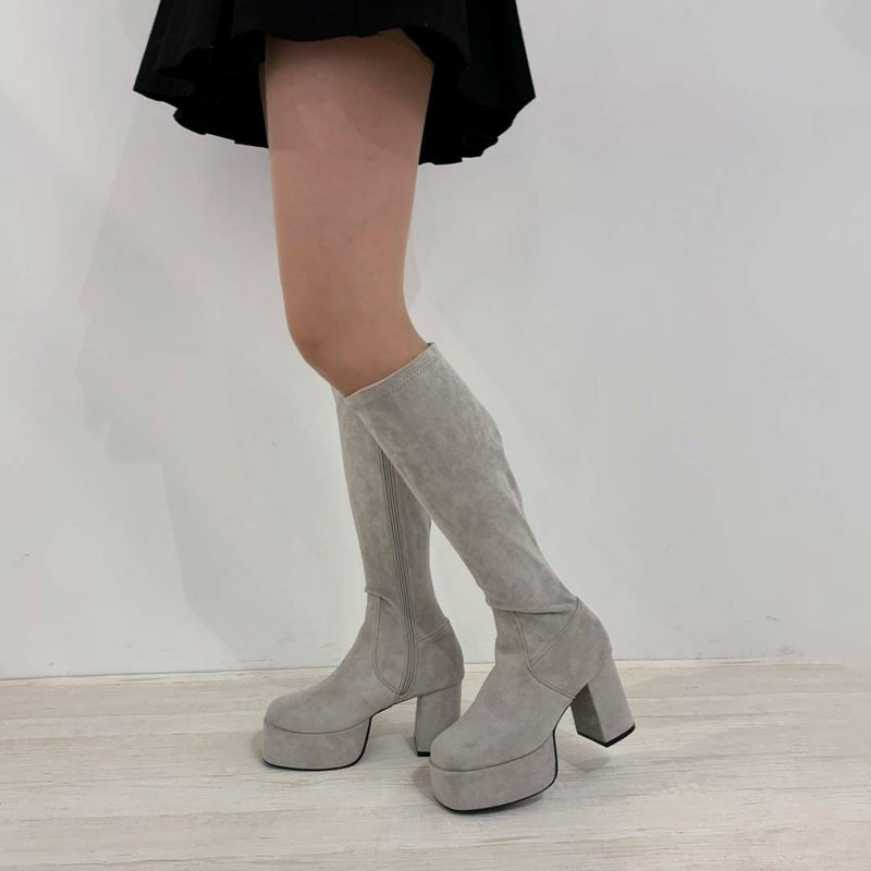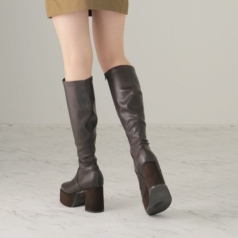 人気の厚底ロングブーツに今期らしいキャメルスエードが仲間入り!