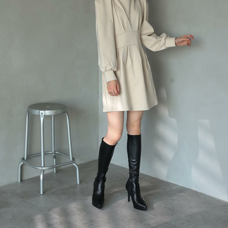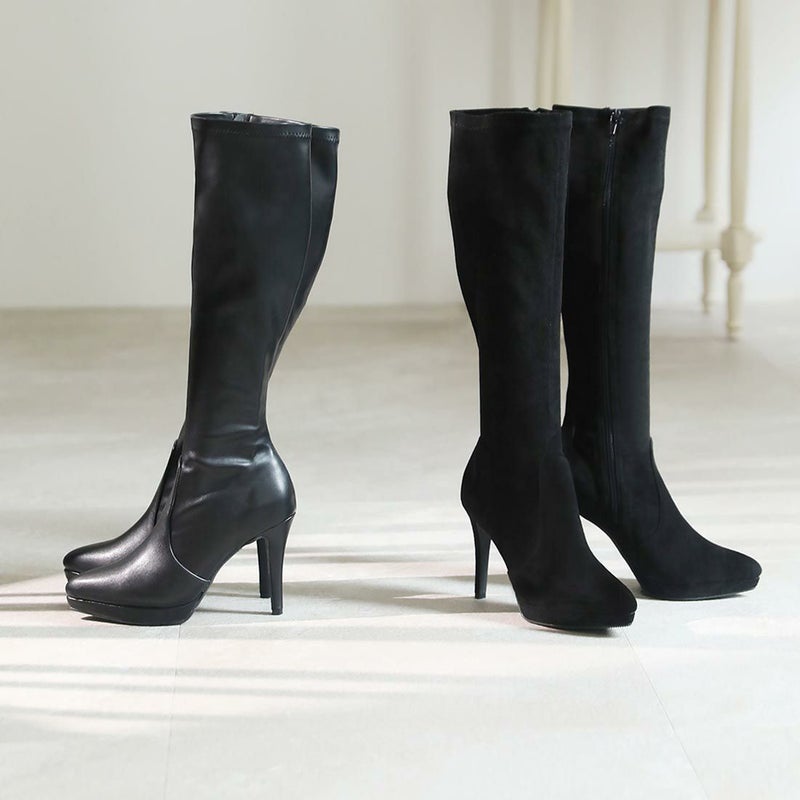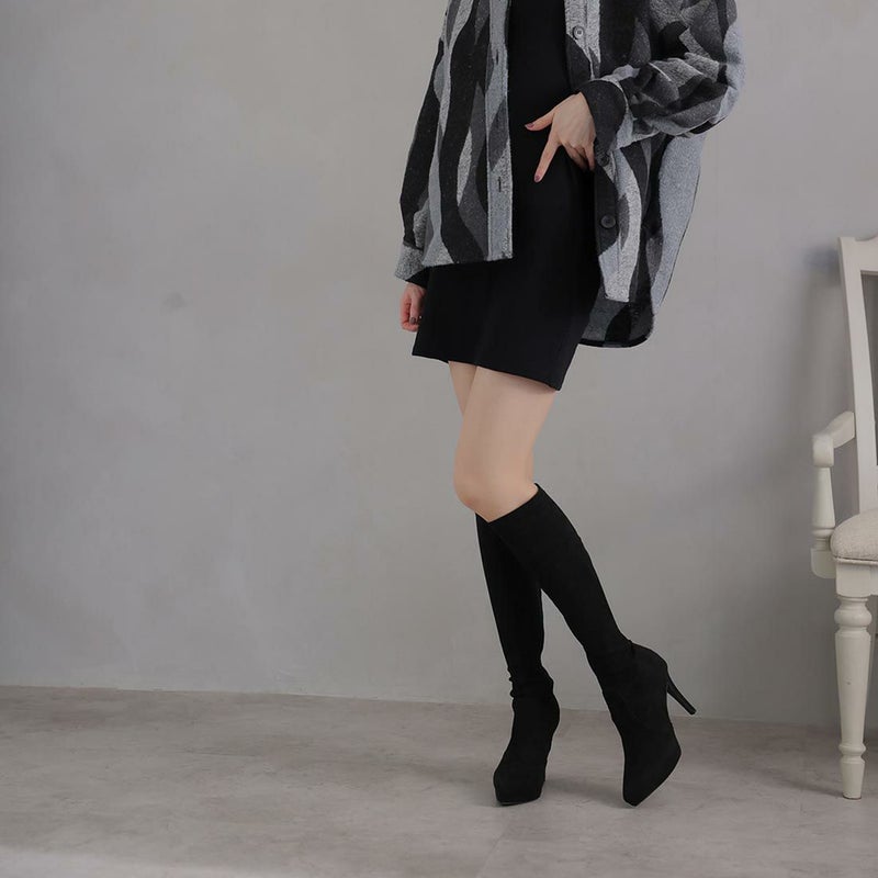 ・ポインテッドトゥ×ピンヒールでスタイルアップが叶うロングストレッチブーツ!