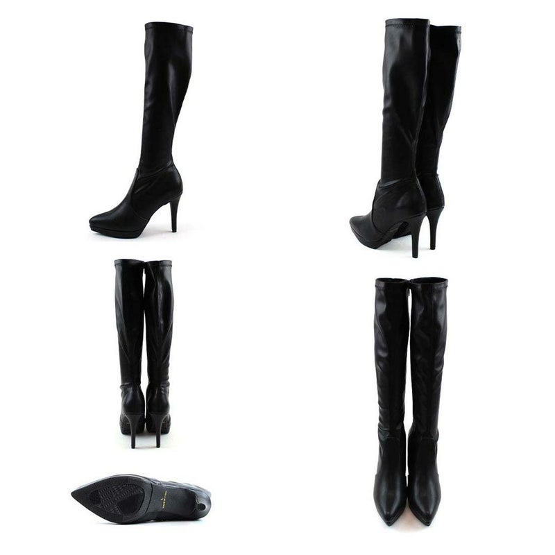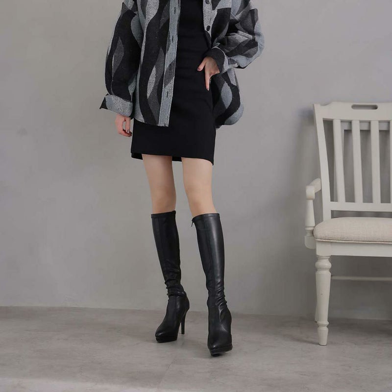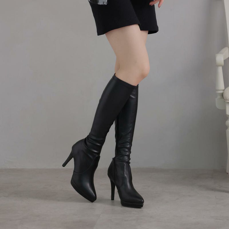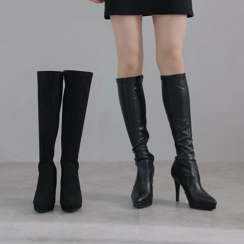 VIVIAN ポインテッドトゥプラットフォームストレッチロングブーツ