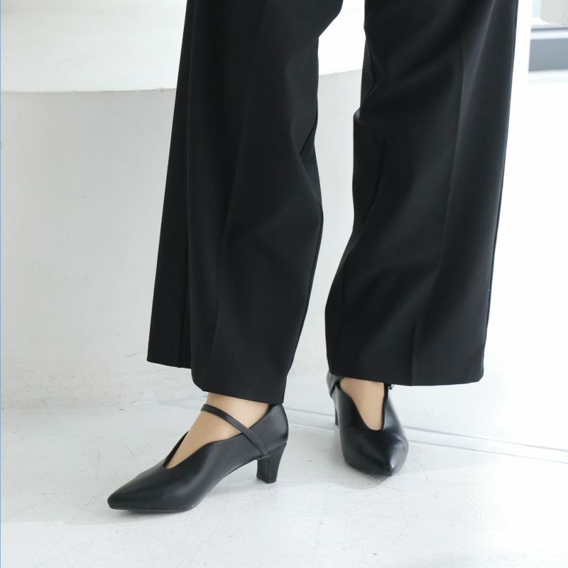 ・5cmプレートヒール×ポインテッドトゥで、脚をキレイに見せてくれてスタイルアップが叶う!