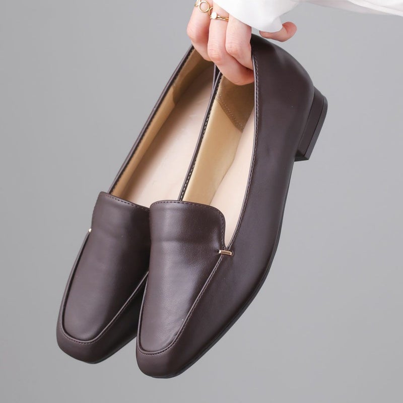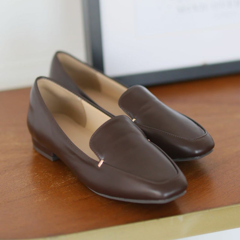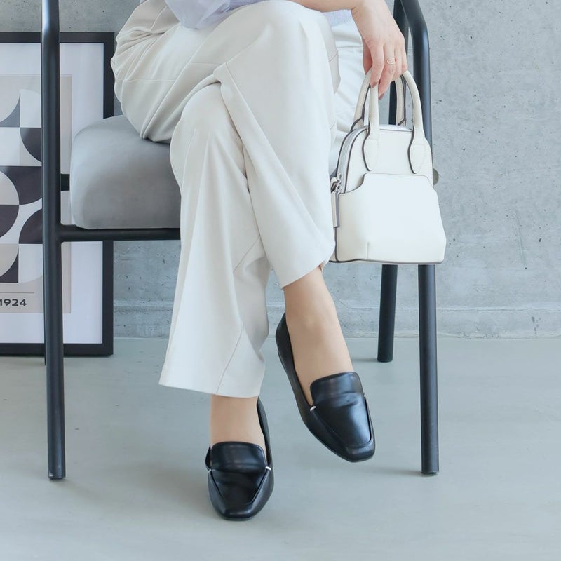 ・両サイドのメタルパーツがアクセントのローヒールローファー