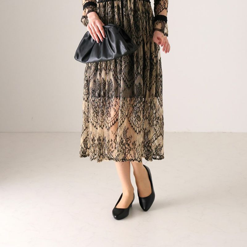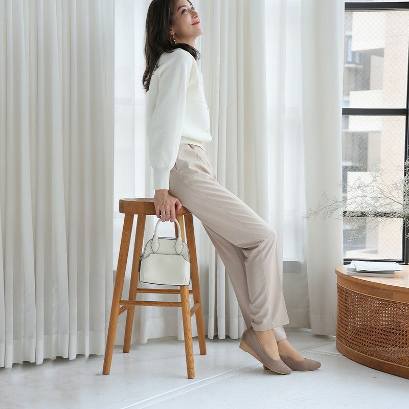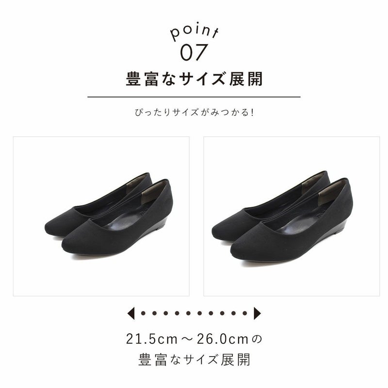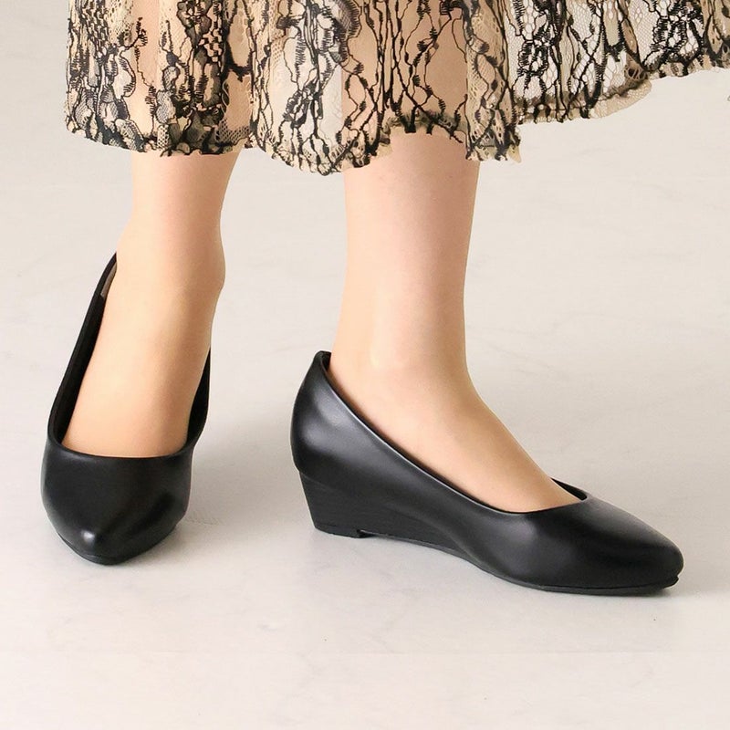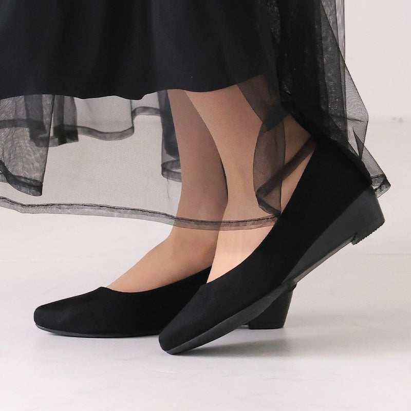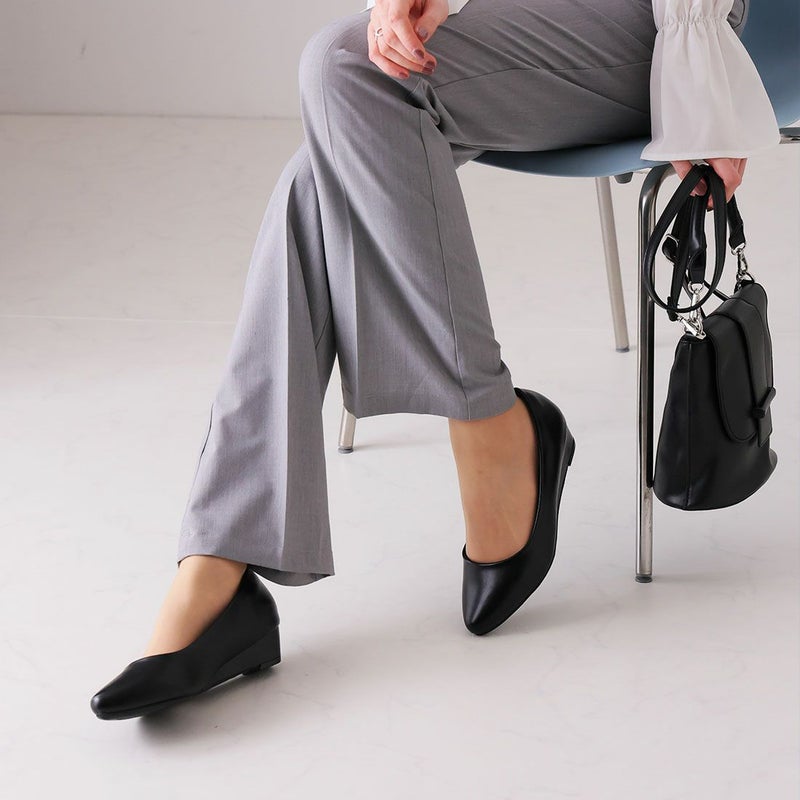 ・3.5cmローウェッジヒール×アーモンドトゥで、脚をキレイに見せてくれてスタイルアップが叶う!