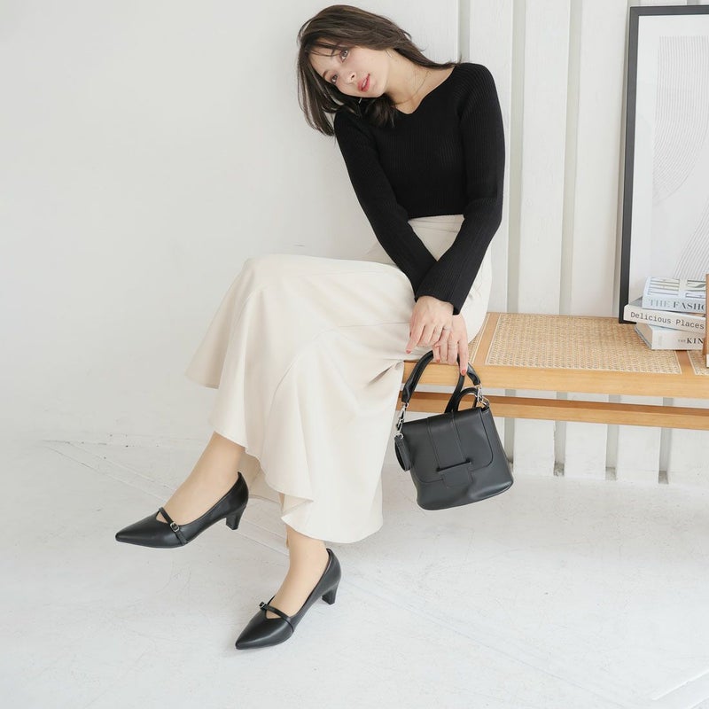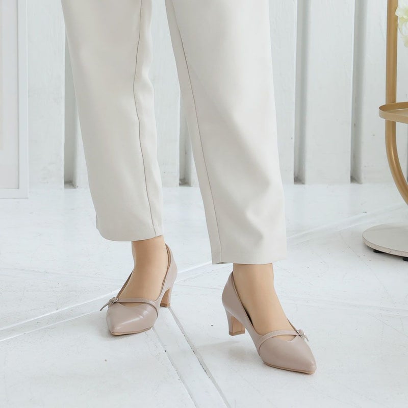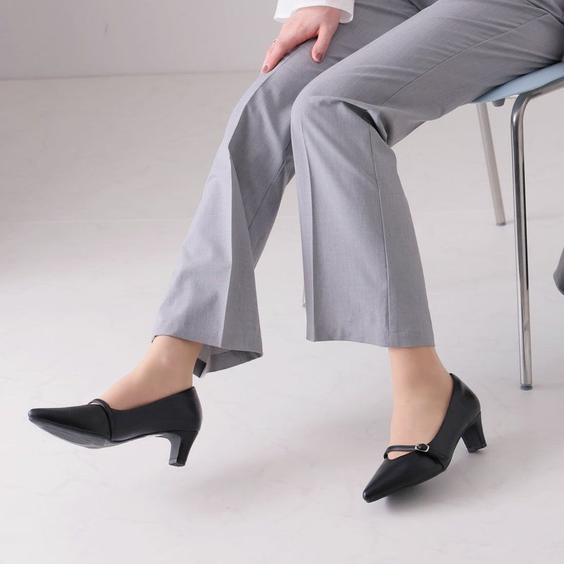 ・5cmプレートヒール×ポインテッドトゥで、脚をキレイに見せてくれてスタイルアップが叶う!