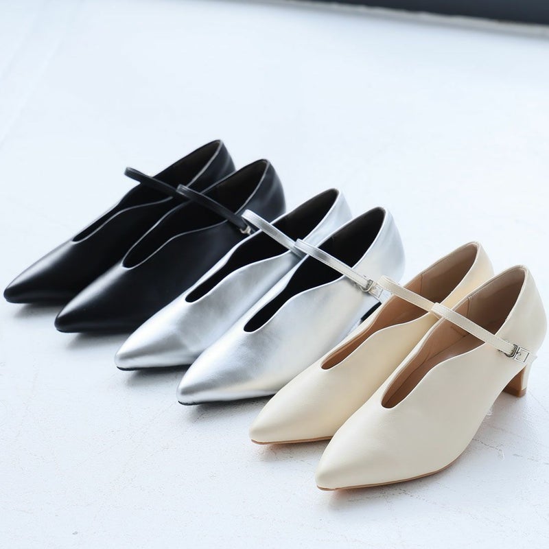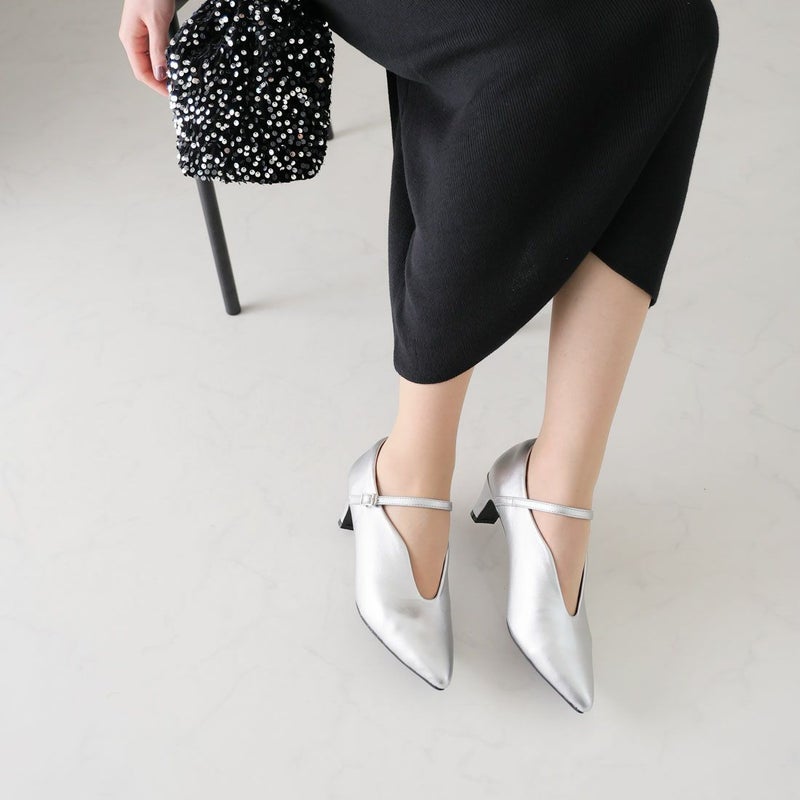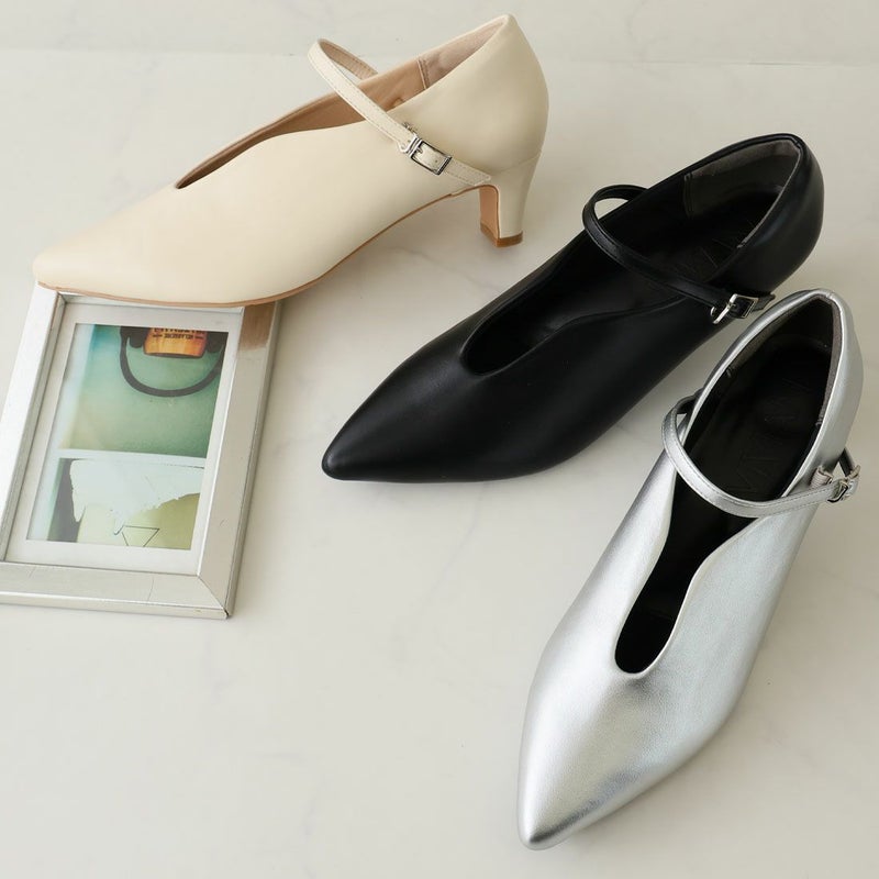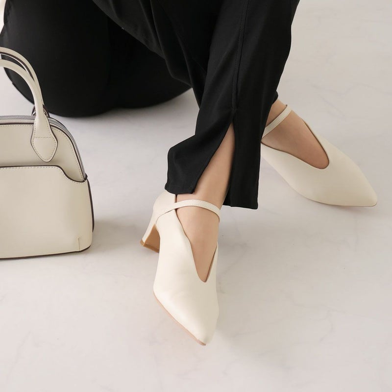・5cmプレートヒール×ポインテッドトゥで、脚をキレイに見せてくれてスタイルアップが叶う!
