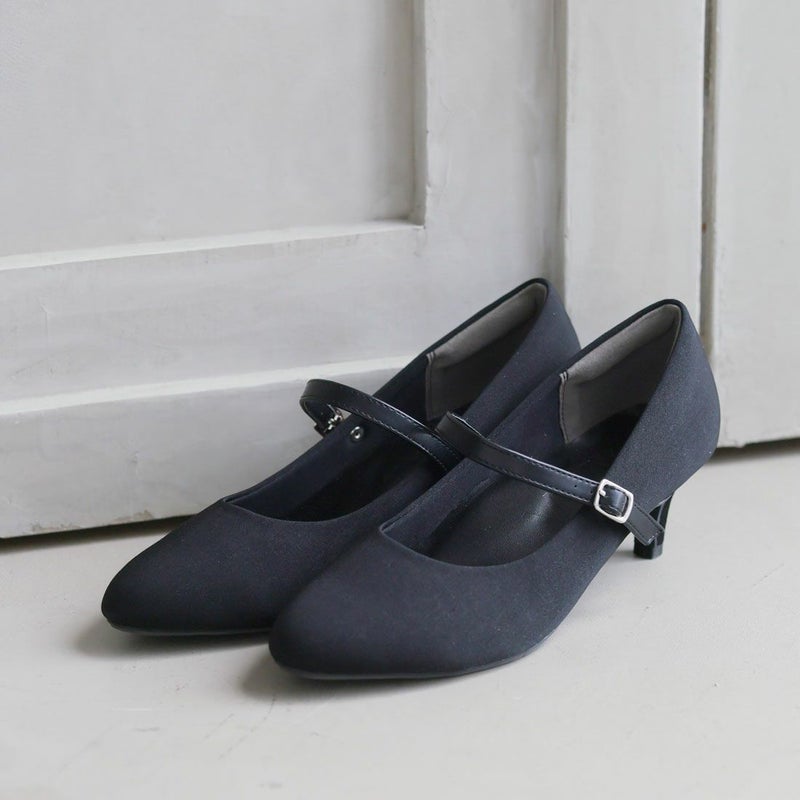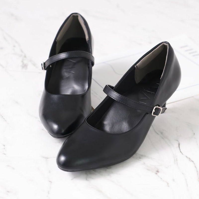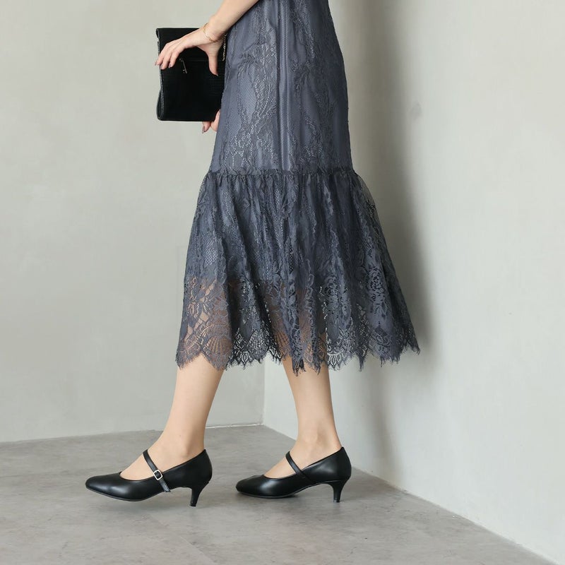 ・5cmヒール×アーモンドトゥで甘くなりすぎない上品フォルム。