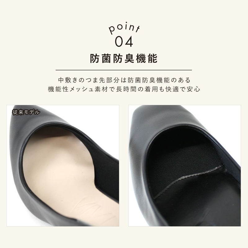 ④つま先は抗菌防臭機能のある機能性メッシュ素材で長時間の着用も安心