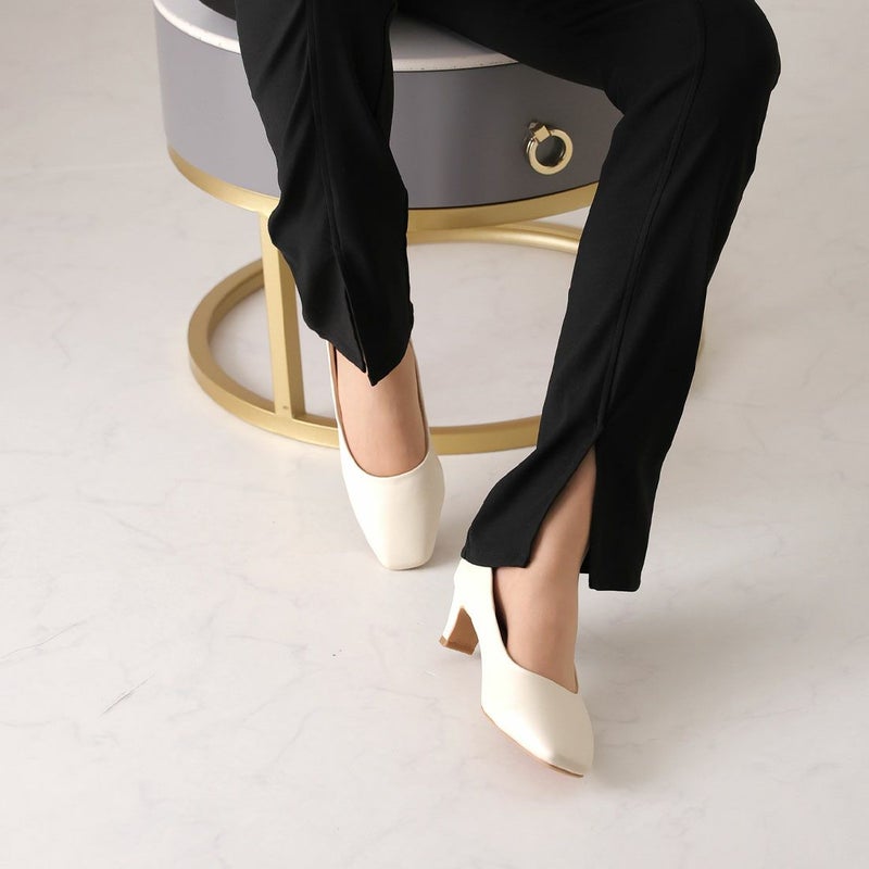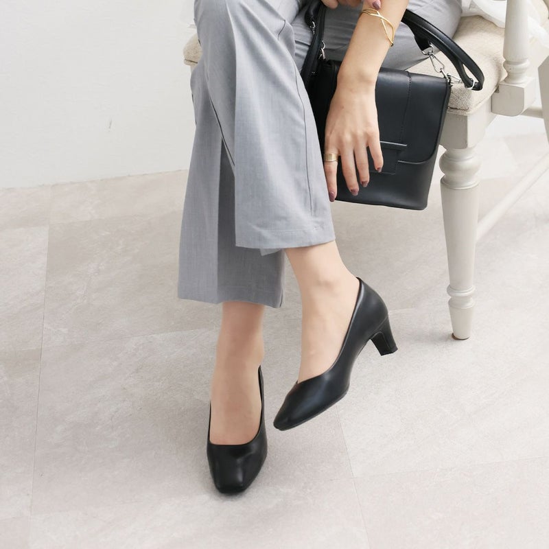 ・5cmプレートヒール×スクエアトゥでトレンド感のある上品フォルム!