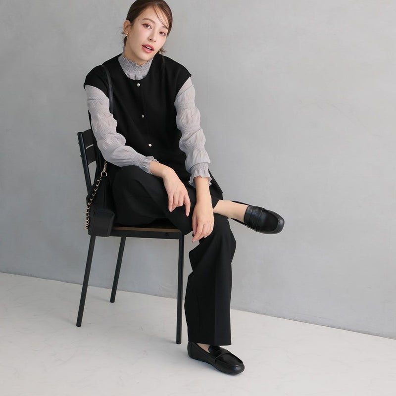 ・オフィスでも活躍間違いなしのデザインは、パンツスタイルやワンピース、スカートなどのデイリーコーデにもマッチ。
