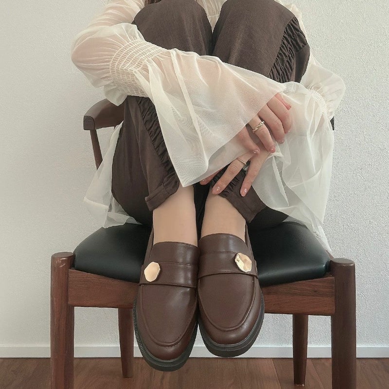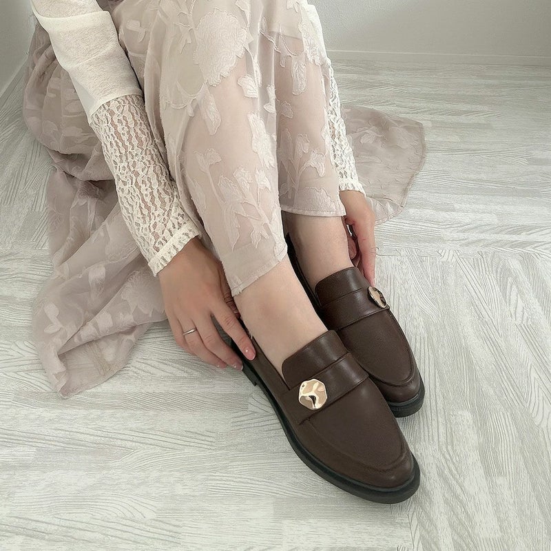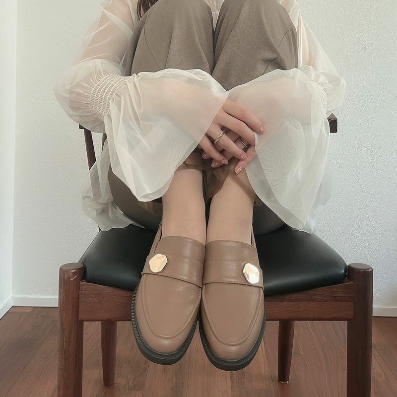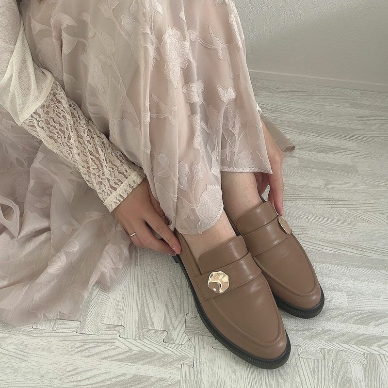 ・目を引くひとクセある変形モチーフで品よく足元をトレンドに仕上げる主役ローファー!アクセサリー感覚でコーデに取り入れるのもオススメ!