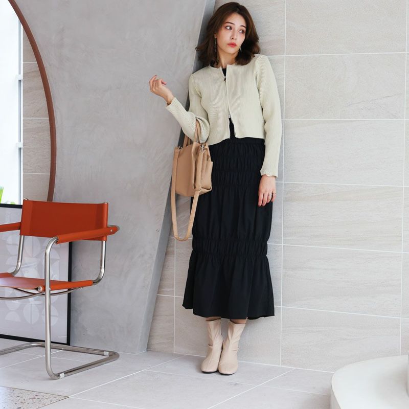 ・長め丈のスカートやワンピースはもちろん、パンツに合わせるスタイリングもオススメ!