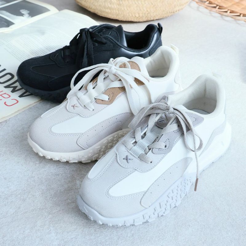 ・異素材コンビカラーのTトゥデザインレースアップスニーカー!