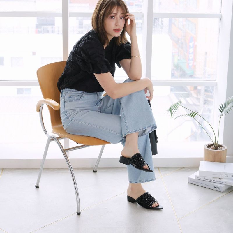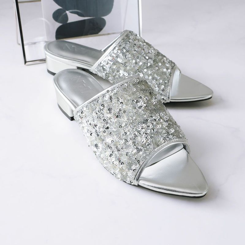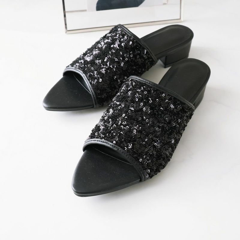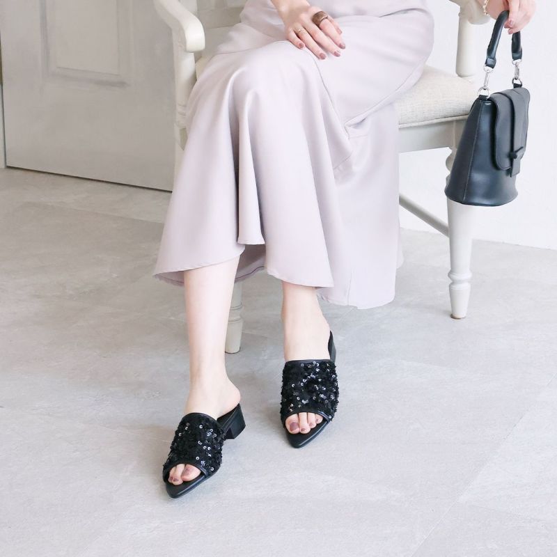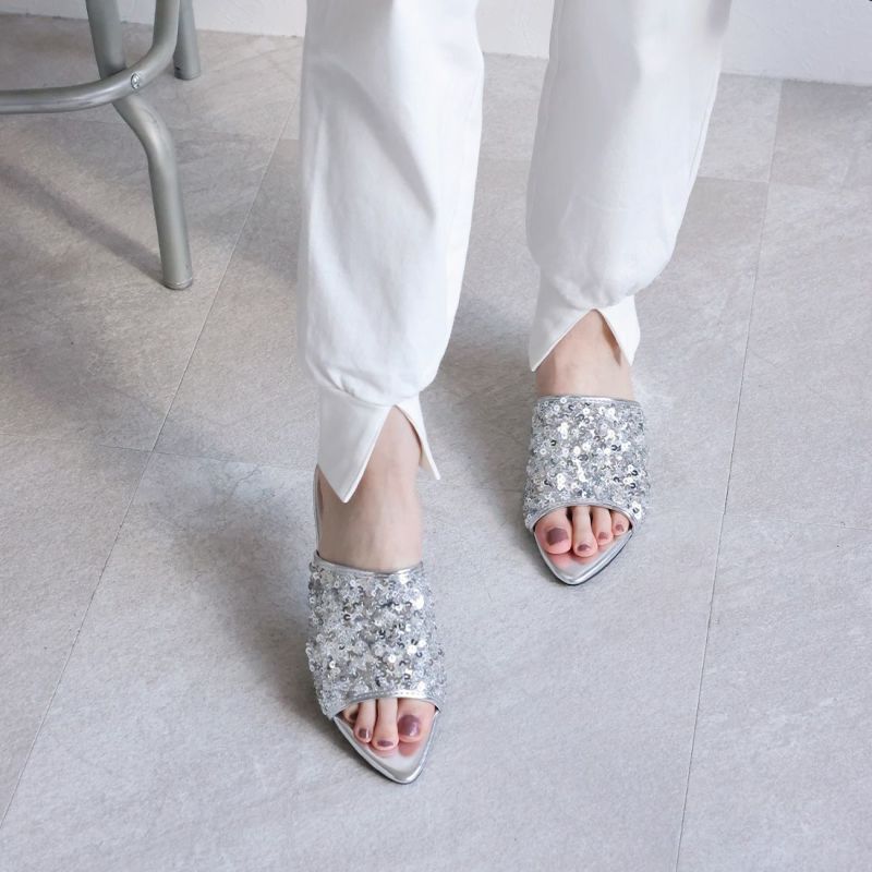 ・スパンコールの輝きをプラスした主役級キラキラミュールサンダル