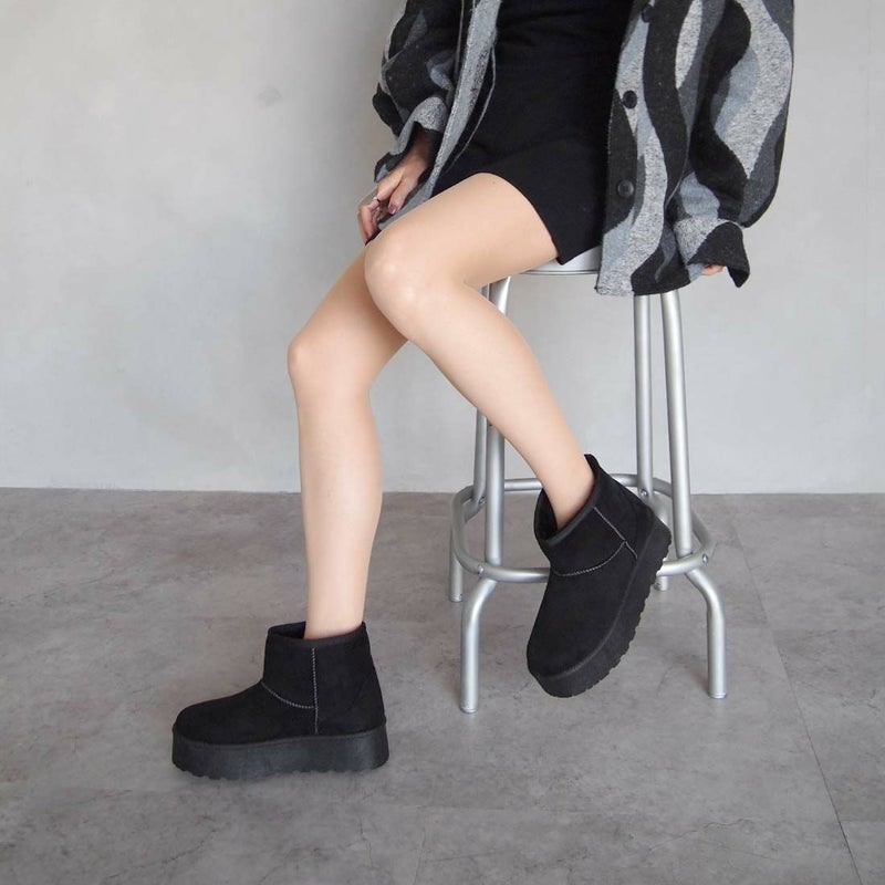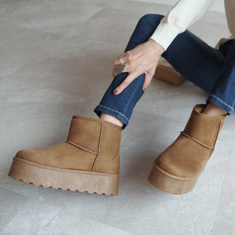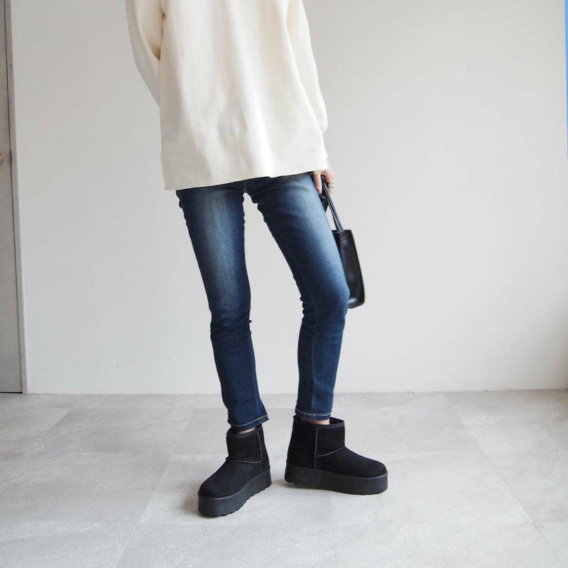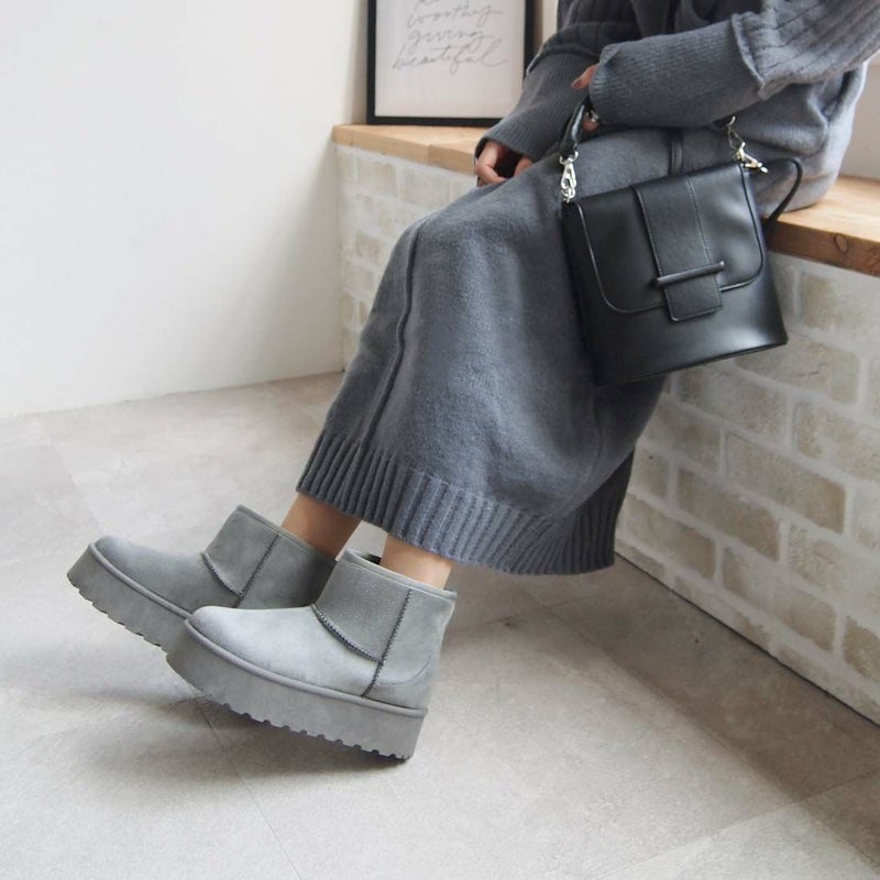 ・冬の定番!あったかムートンブーツも厚底で今っぽいシルエット!