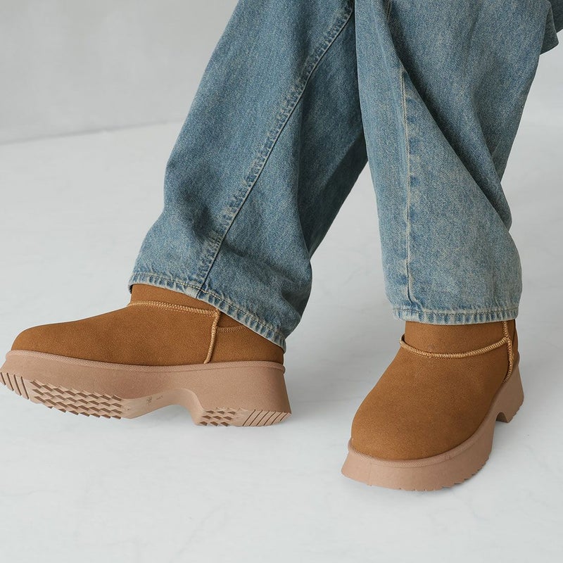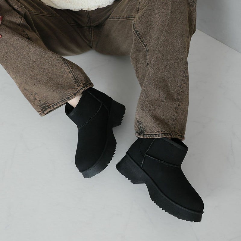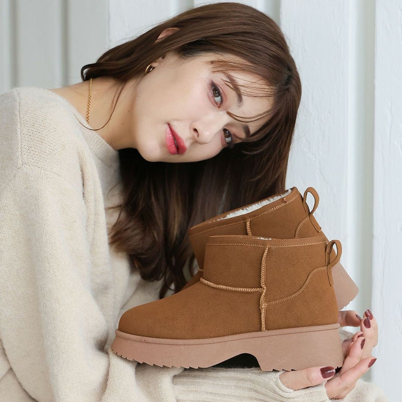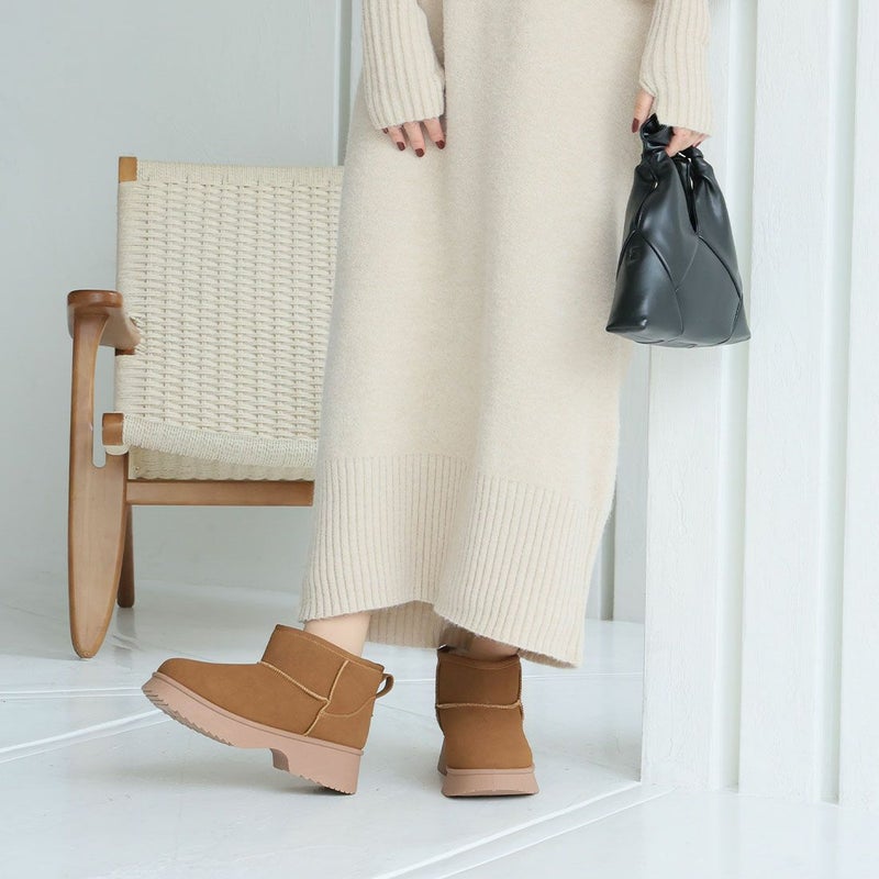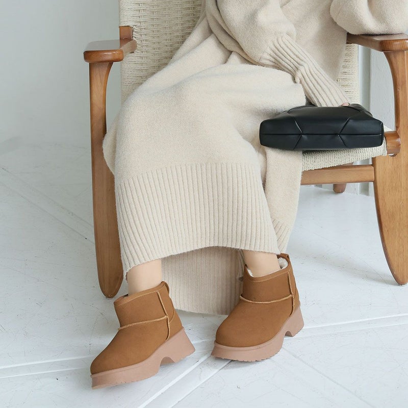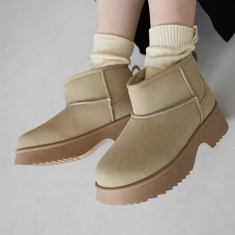 ・冬の定番!あったかムートンブーツも厚底チャンキーヒールで今っぽシルエット!