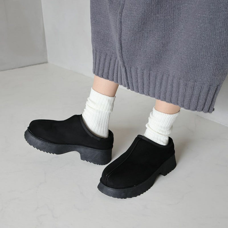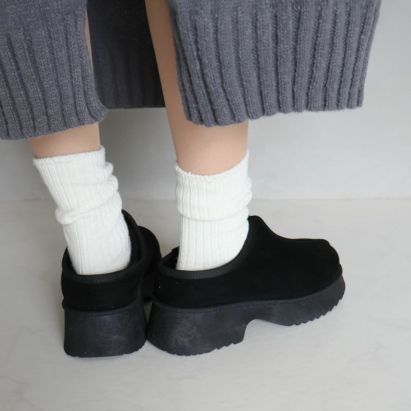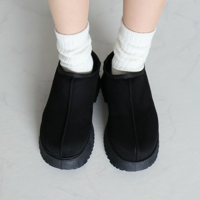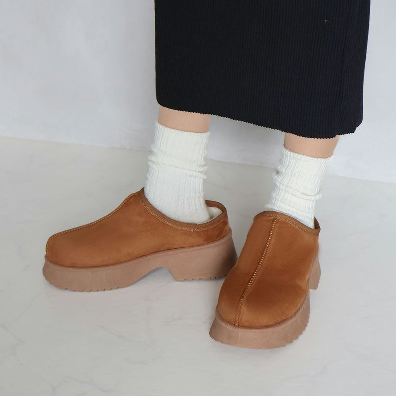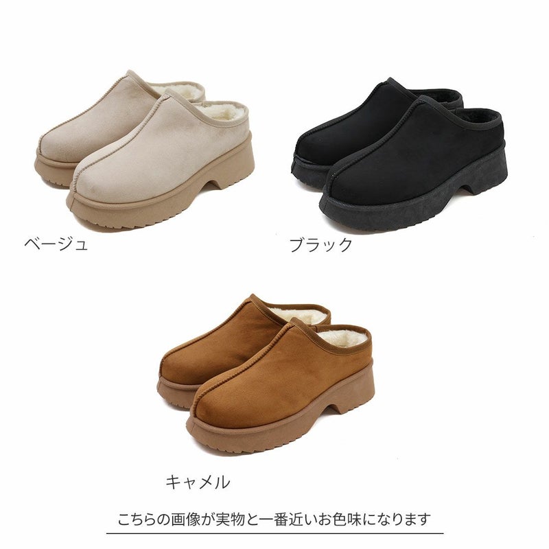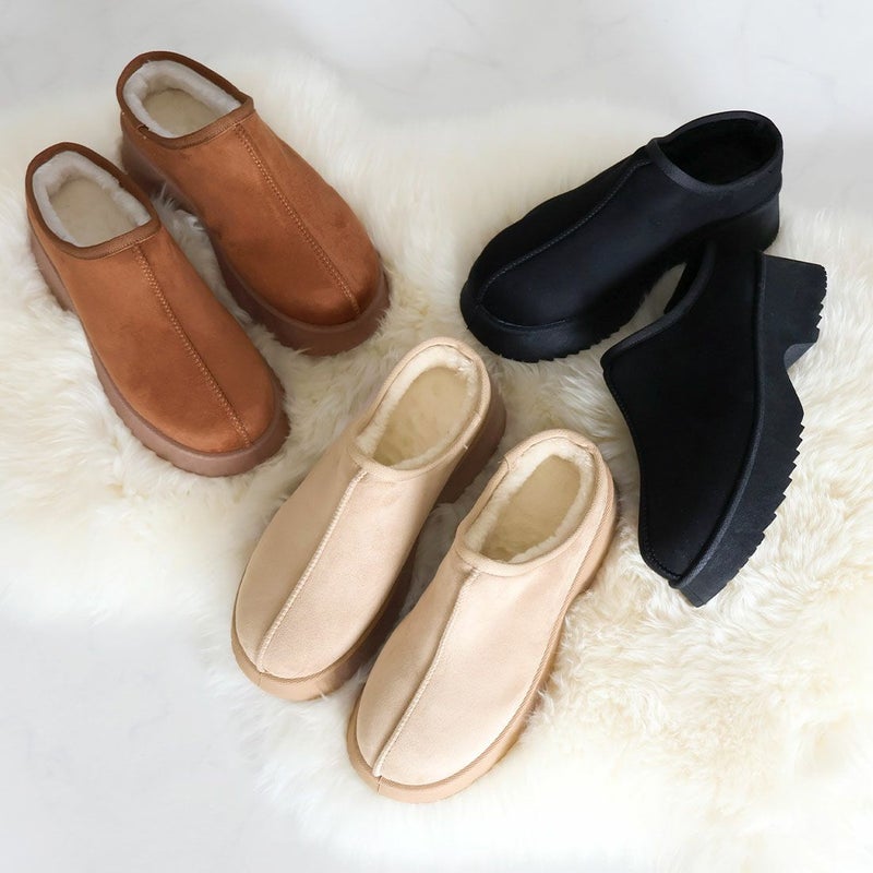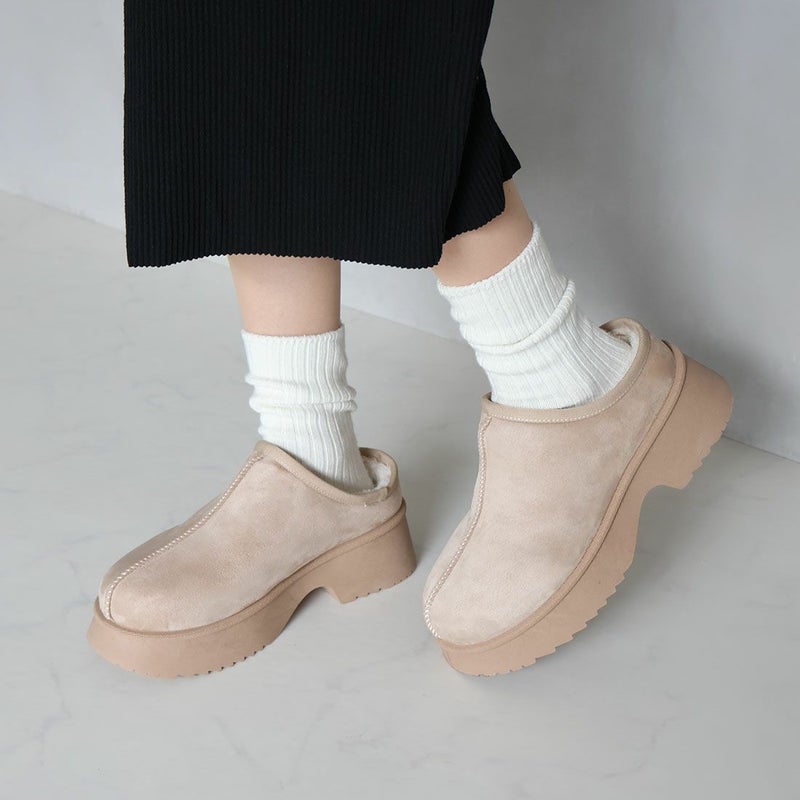 ・厚底チャンキーヒールで今っぽシルエットのムートンスリッパ!