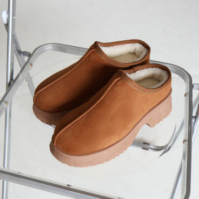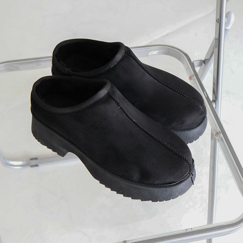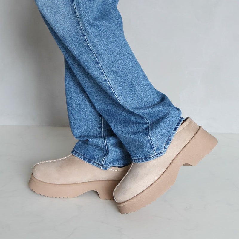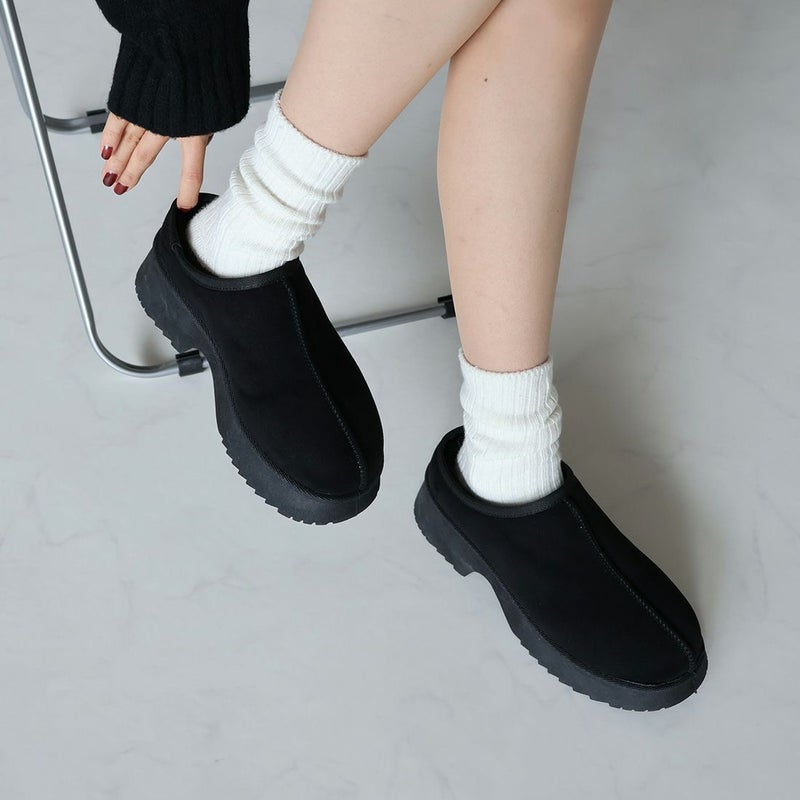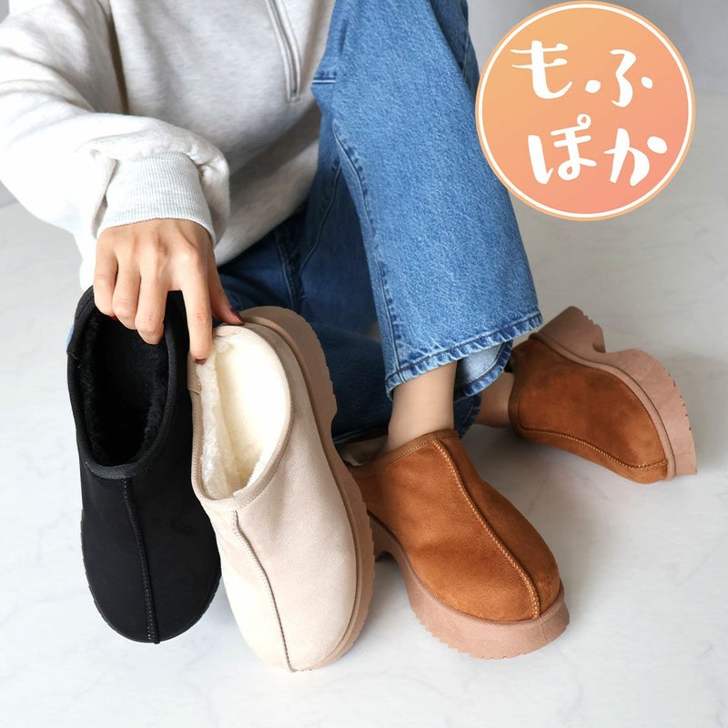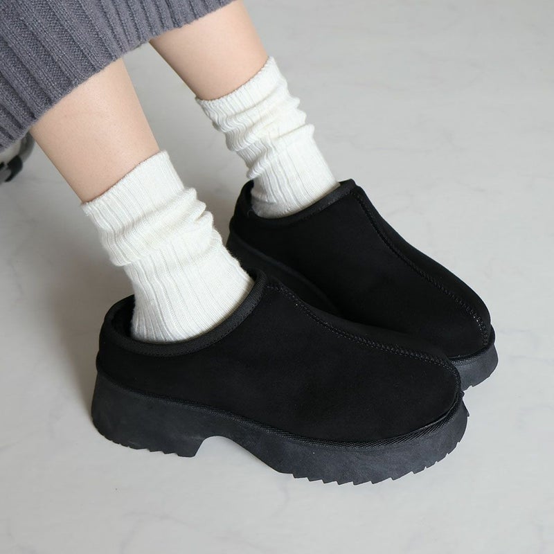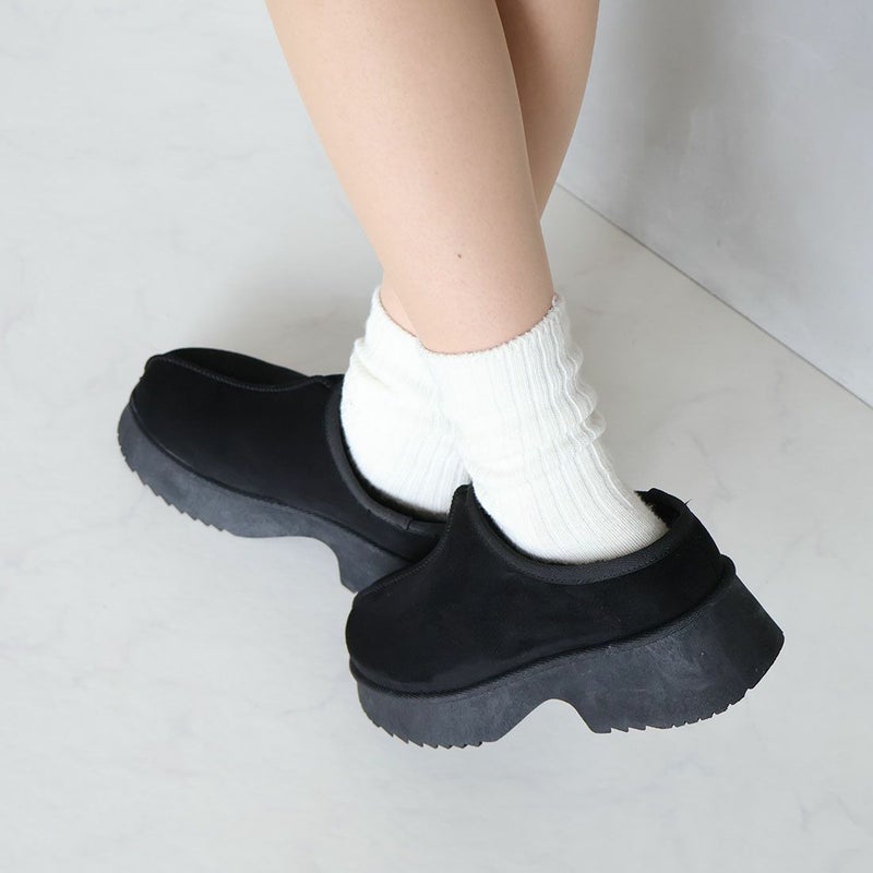 ・厚底チャンキーヒールで今っぽシルエットのムートンスリッパ!