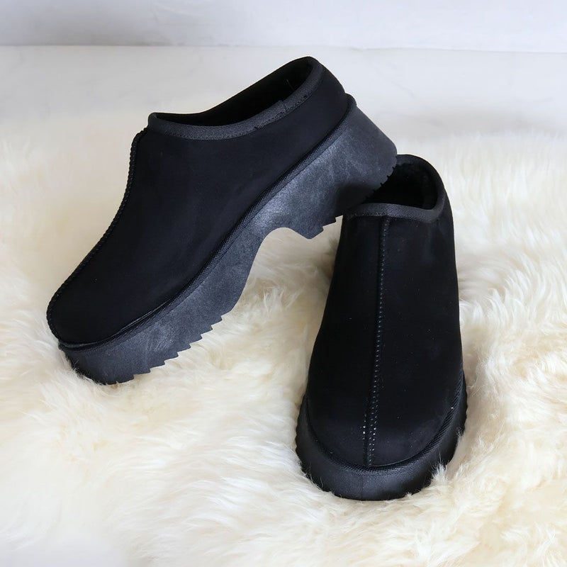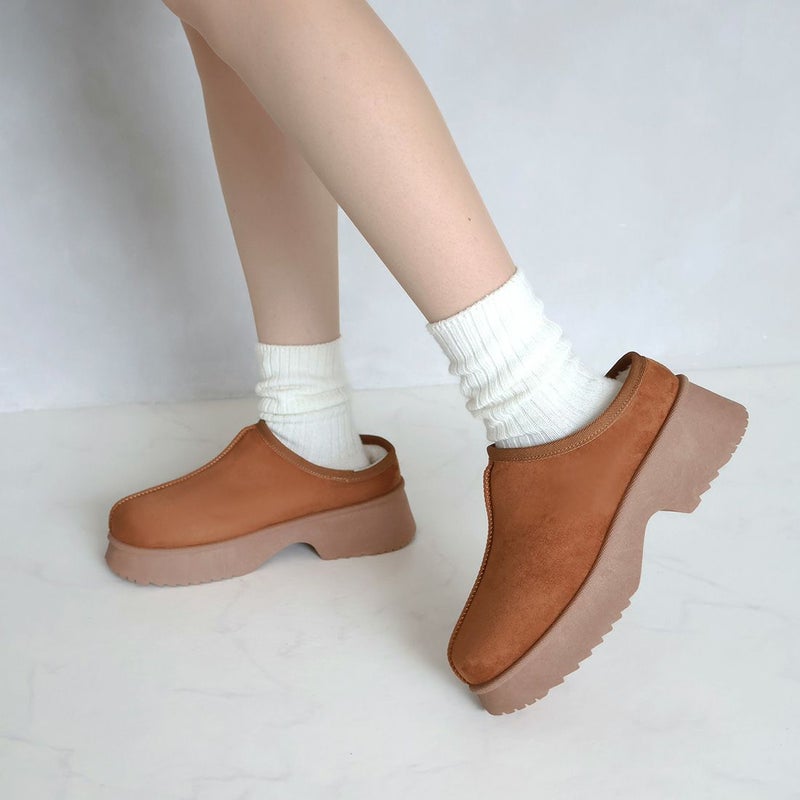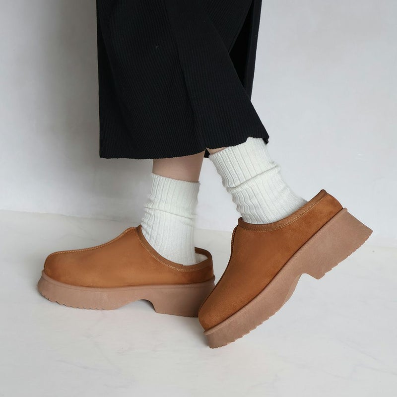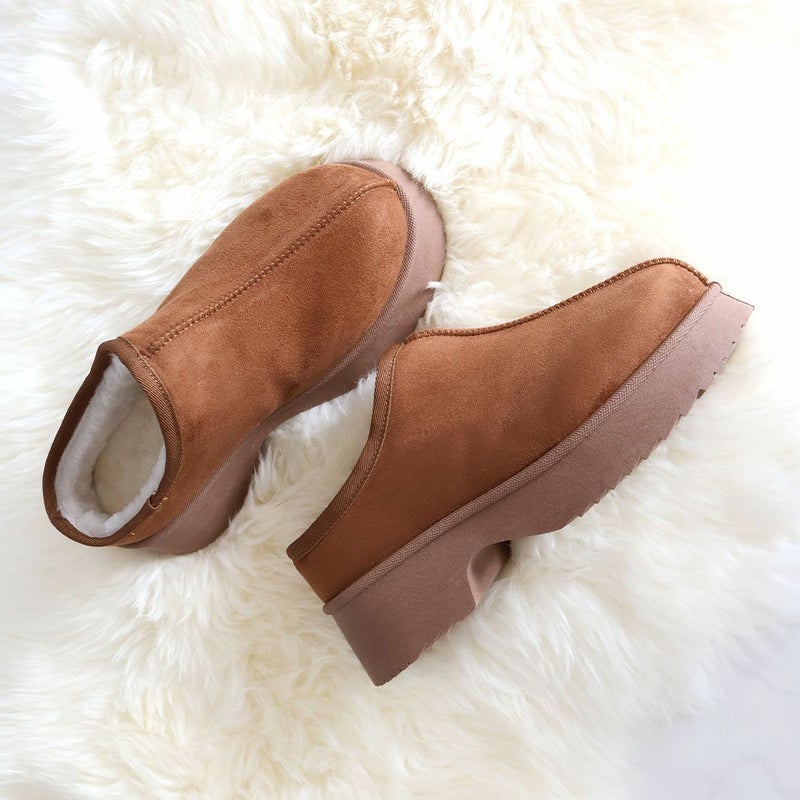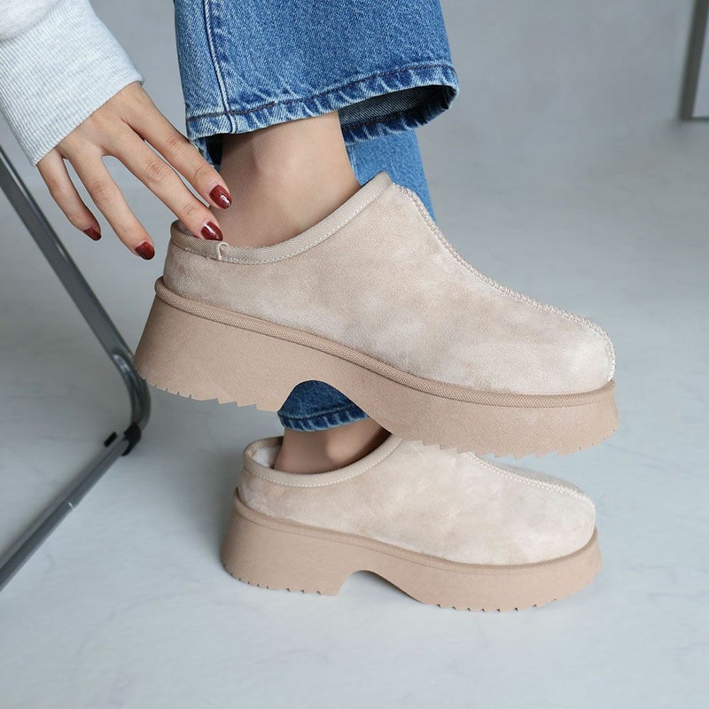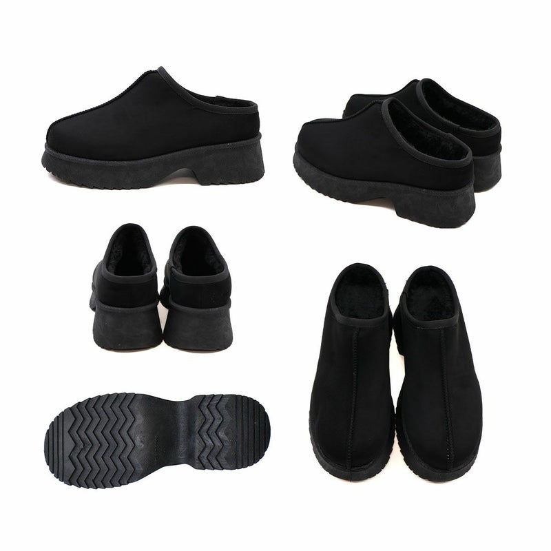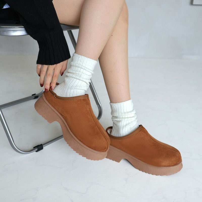 ・厚底チャンキーヒールで今っぽシルエットのムートンスリッパ!