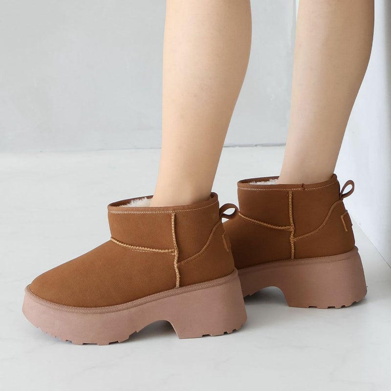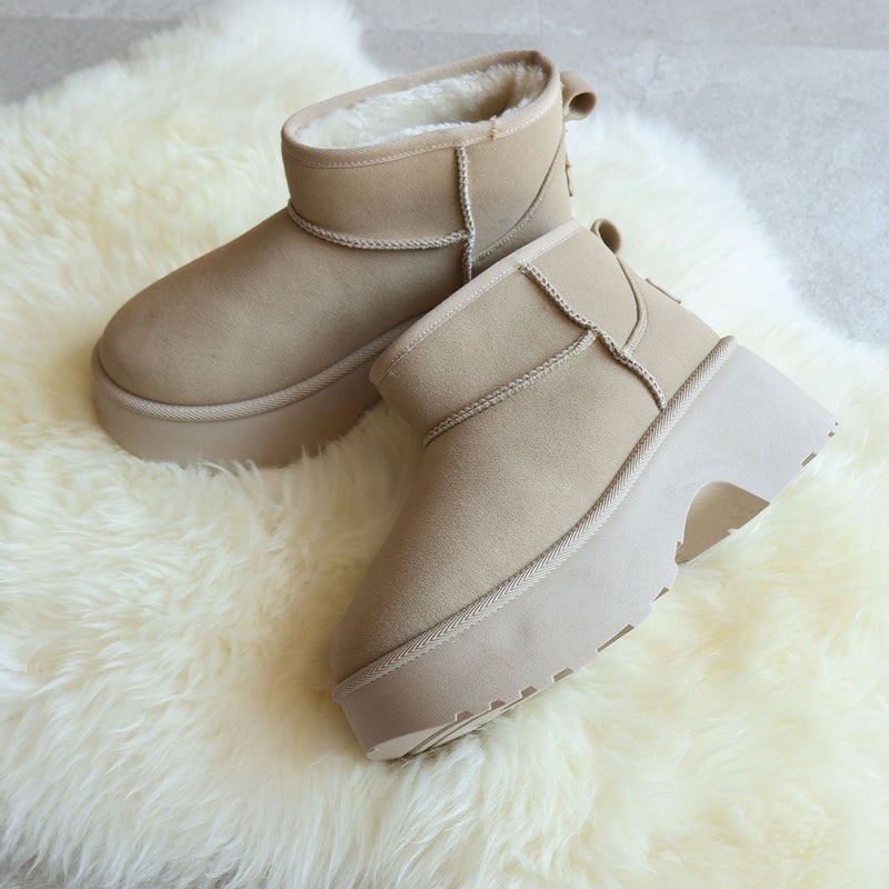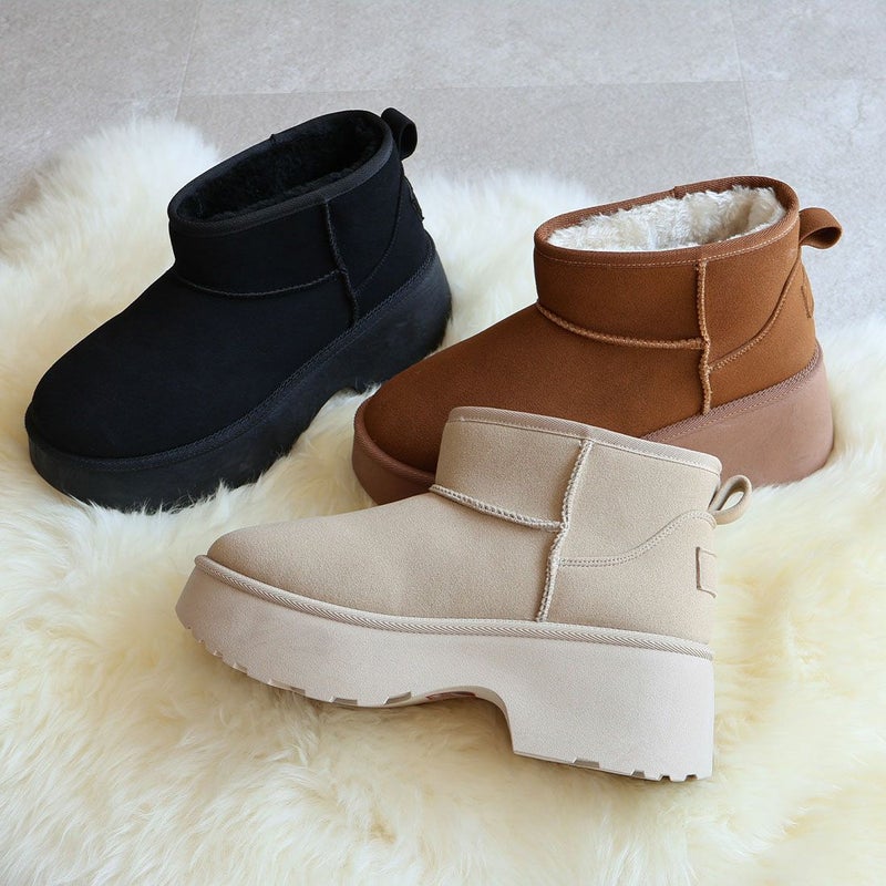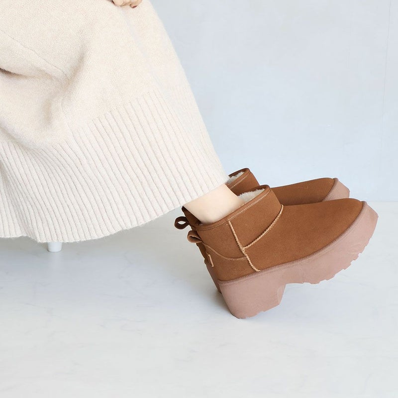・冬の定番!あったかムートンブーツも厚底チャンキーヒールで今っぽシルエット!