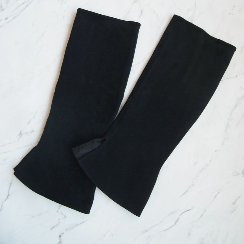 ・脚長に見える裾広がりのブーツカバーでスタイルアップが叶う!