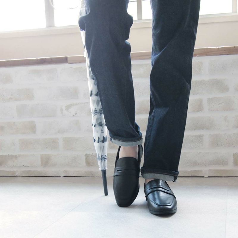 ローファーデザインならレインシューズには見えずにクラシックな足元を演出できるのでキチンと感もプラスできる。
