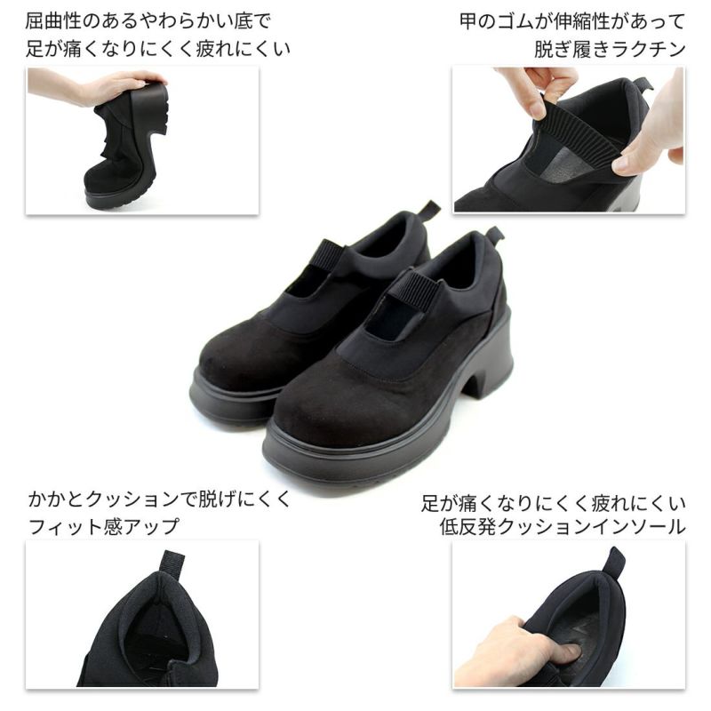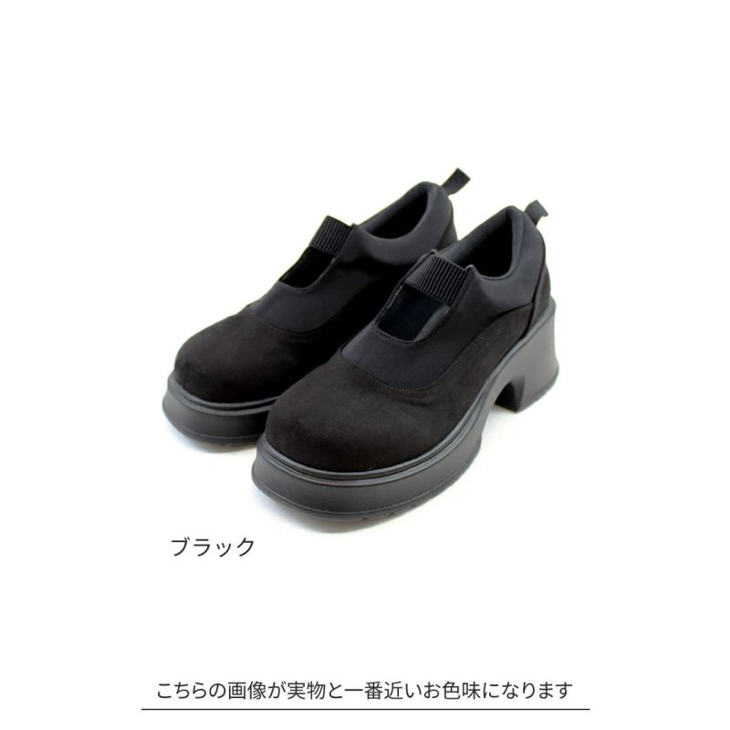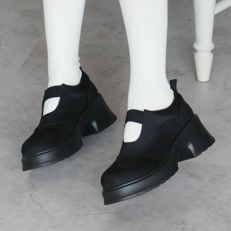 ・ぽってりとしたボリュームソールとゴムデザインがポイントの厚底シューズ