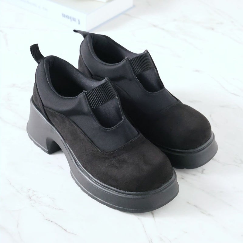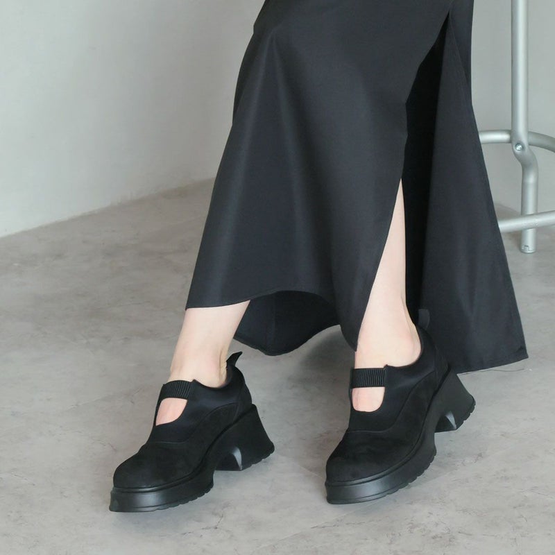 ・ぽってりとしたボリュームソールとゴムデザインがポイントの厚底シューズ