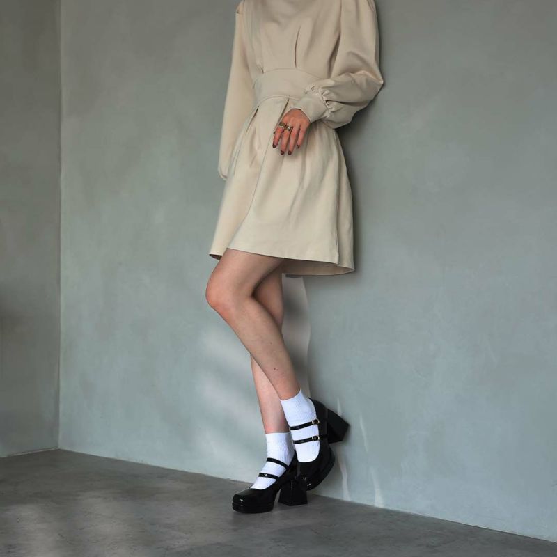 ・素足はもちろん、靴下合わせでもサマになってコーデがキマるメリージェーンデザイン
